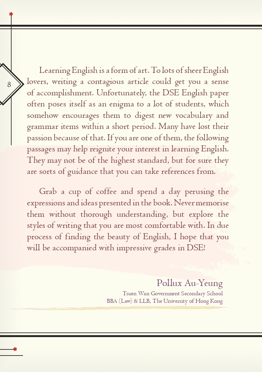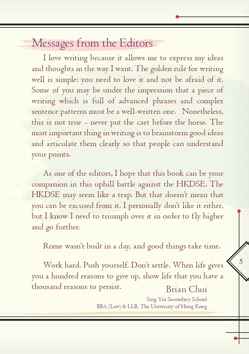 30 Strokes of Stars is a collection of top sample writings for HKDSE by 24 Law Undergraduates