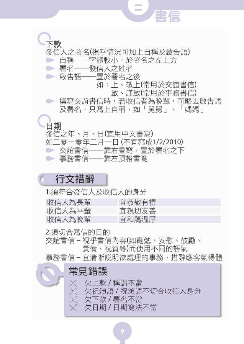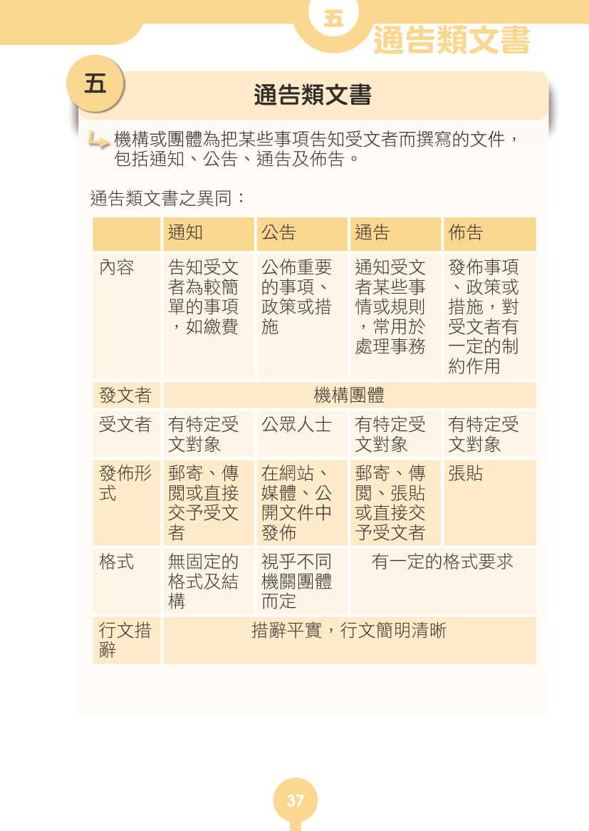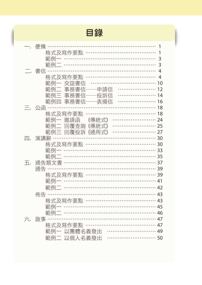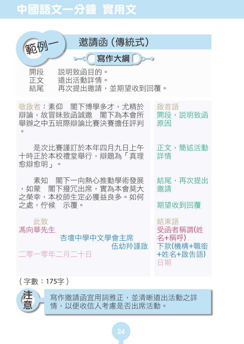 - 詳細列明各種實用文的格式