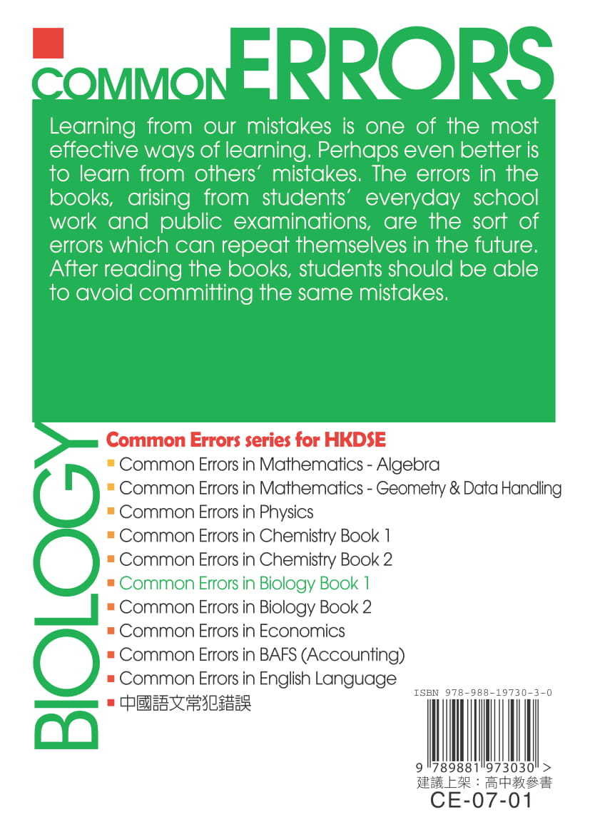 - A total of 200 common errors in books 1 and 2, which features common misconceptions related to the following topics in the compulsory part of the NSS Biology Curriculum