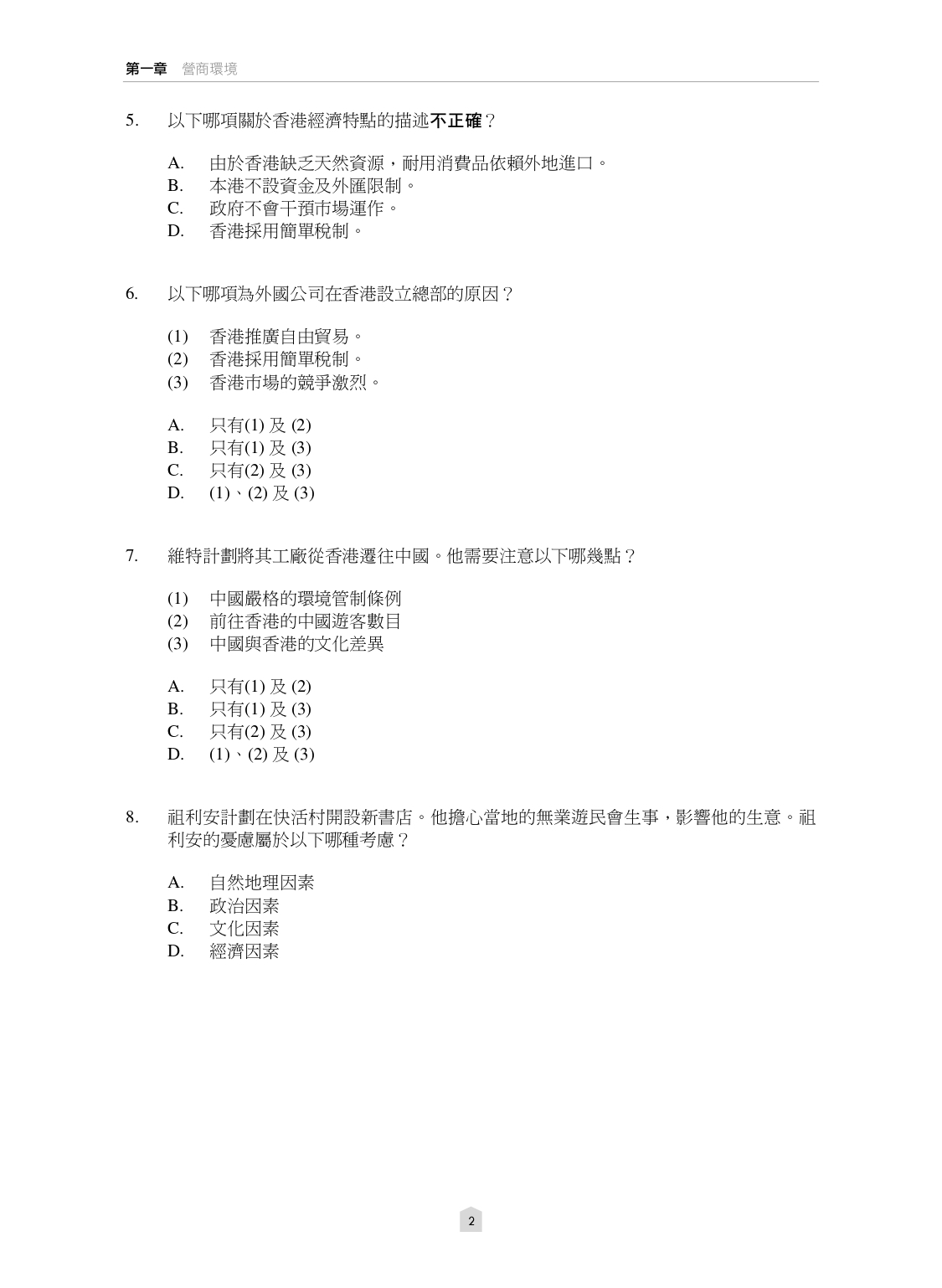 本練習涵蓋 DSE 企會財課程必修部分600條多項選擇題題目,務求使學生對科目有更深入的了解,掌握課題,從而在公開試中考獲佳績。