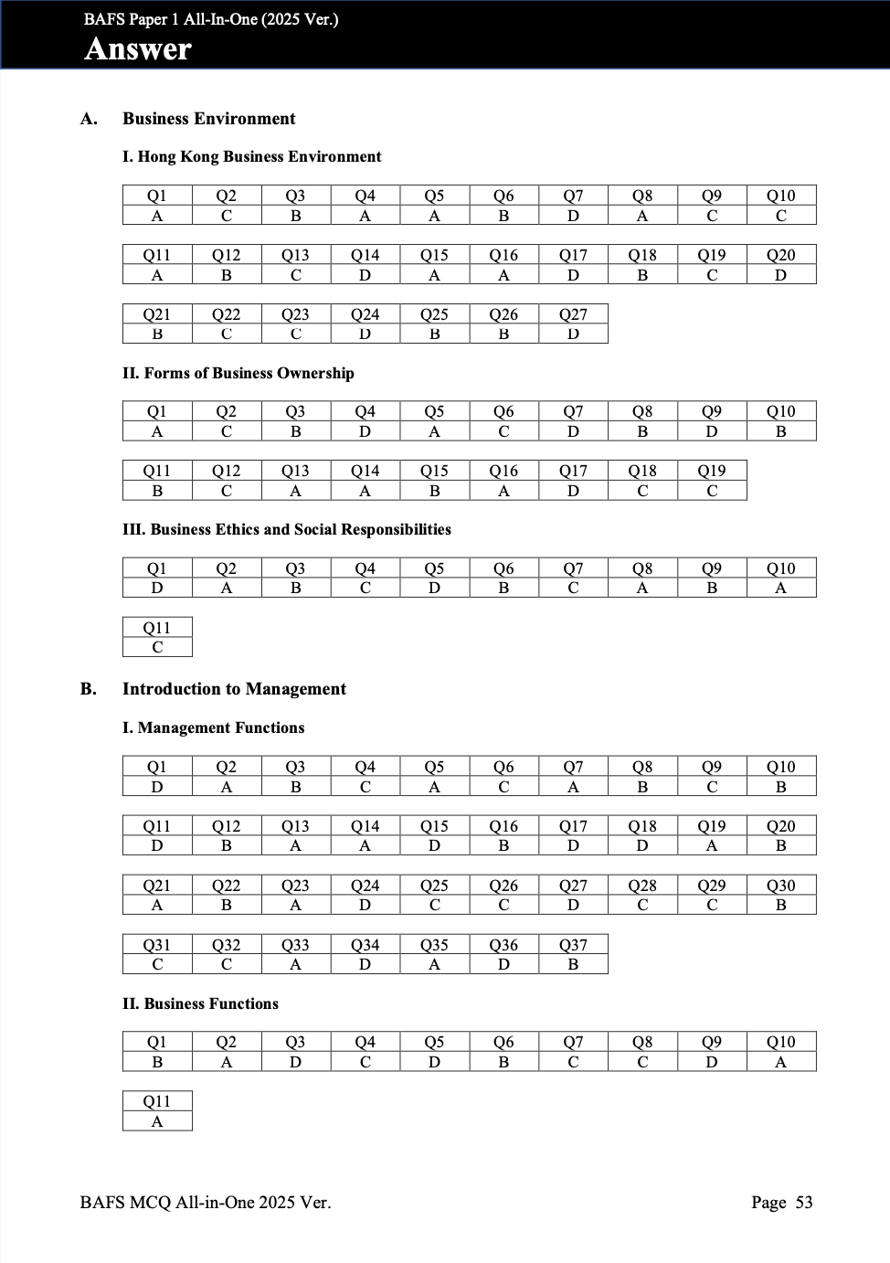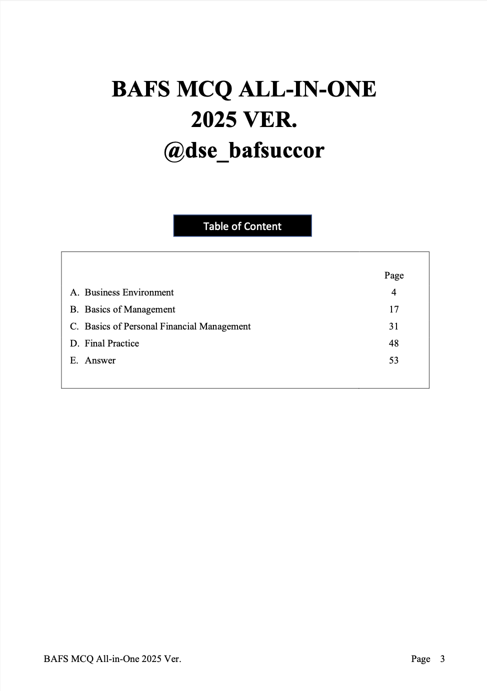 - 不定時分享BAFS伏位,例題及策略,間中分享其他心得,專科補BAFS會計(英文卷)