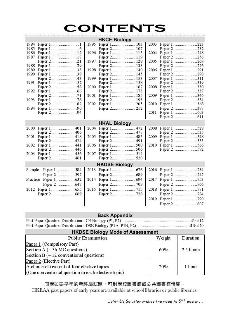 本書並無收錄試題。近年的試題可於考評局購買,早年的試題則可於學校圖書館或公共圖書館借閱。