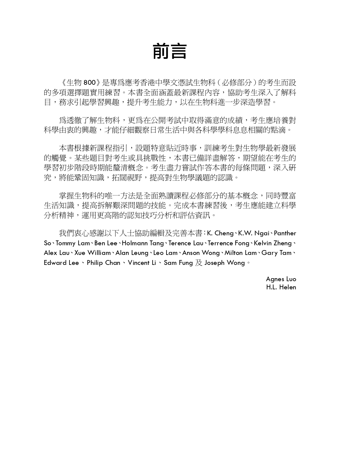 《生物 800》是專門為香港中學文憑試生物科考生編訂的多項選擇題題庫。