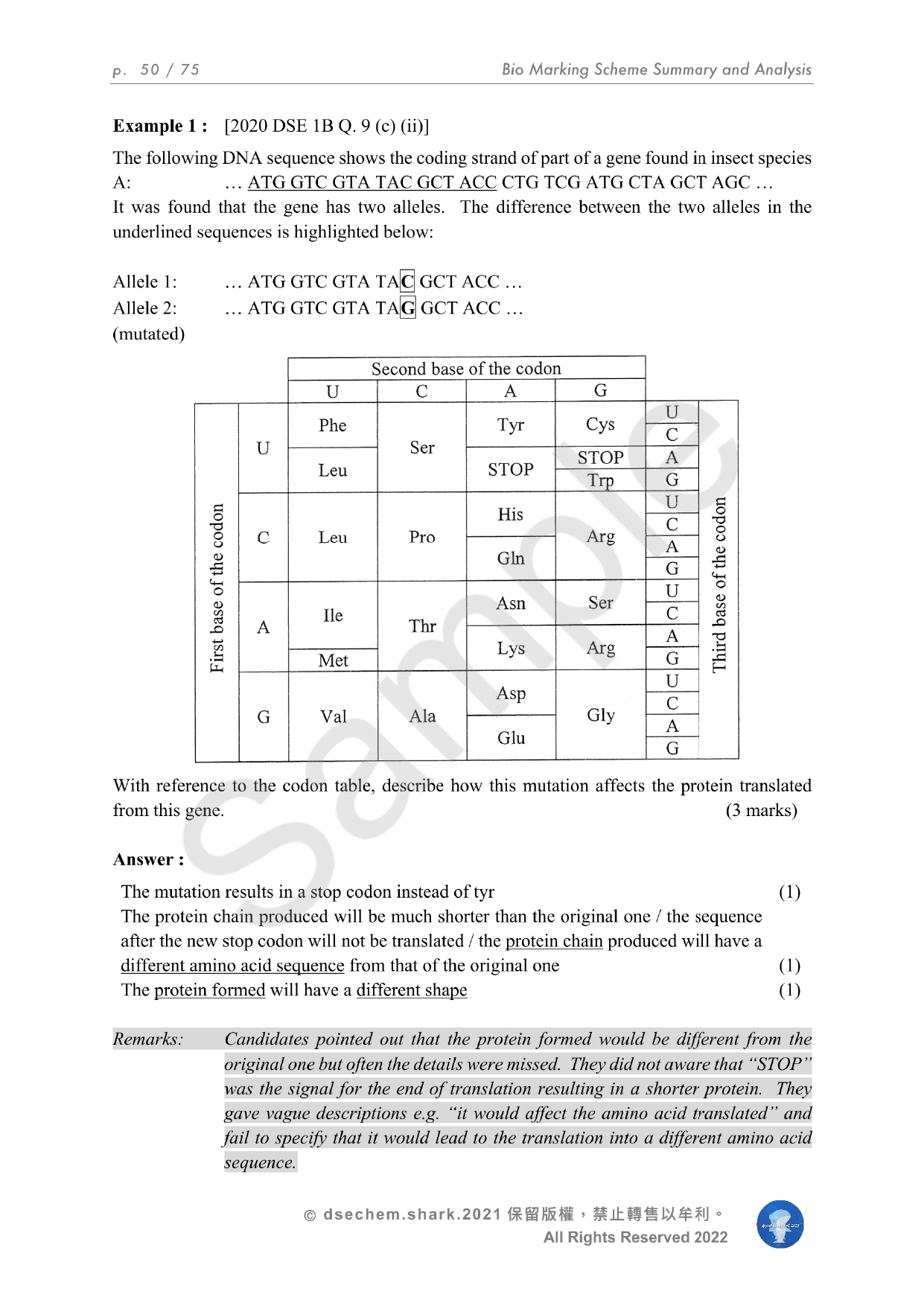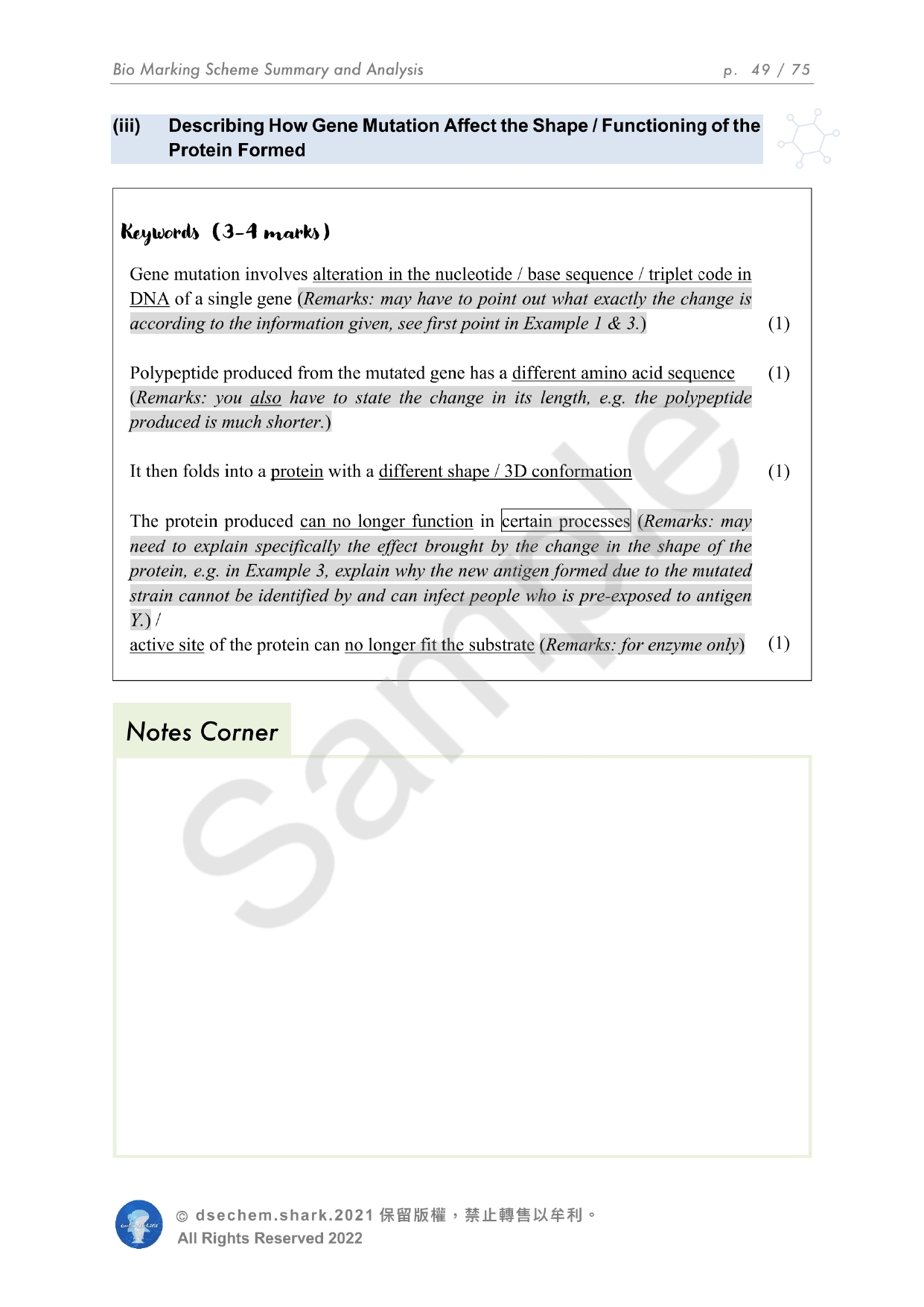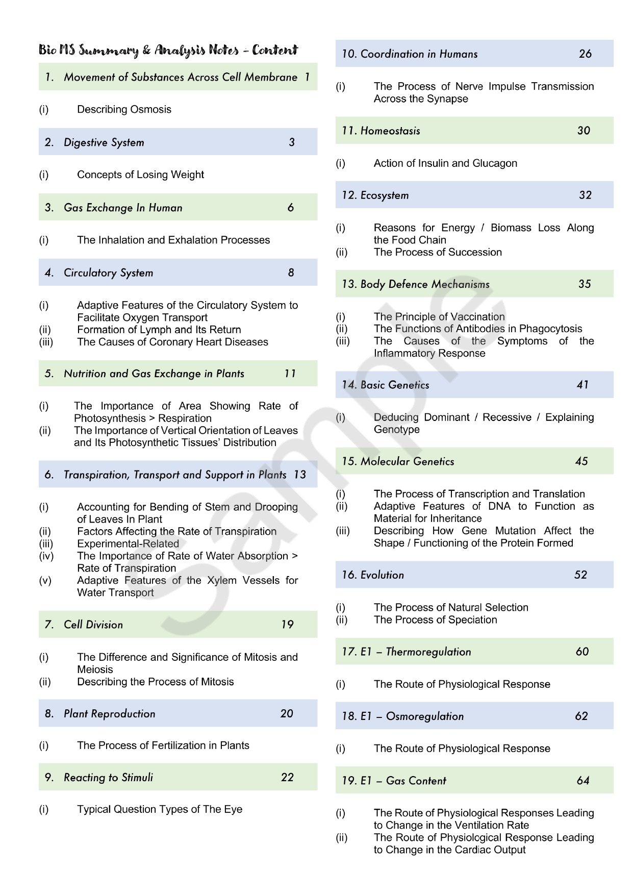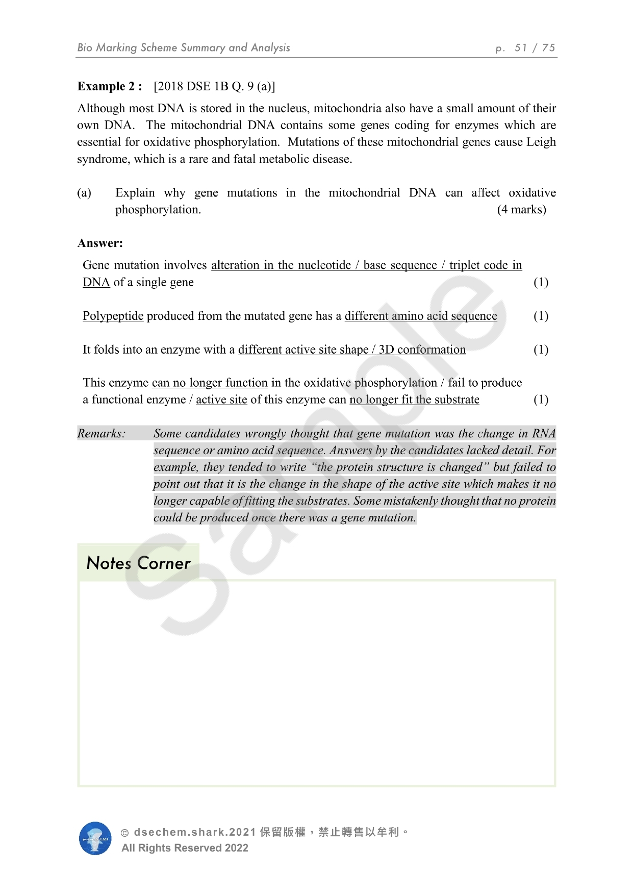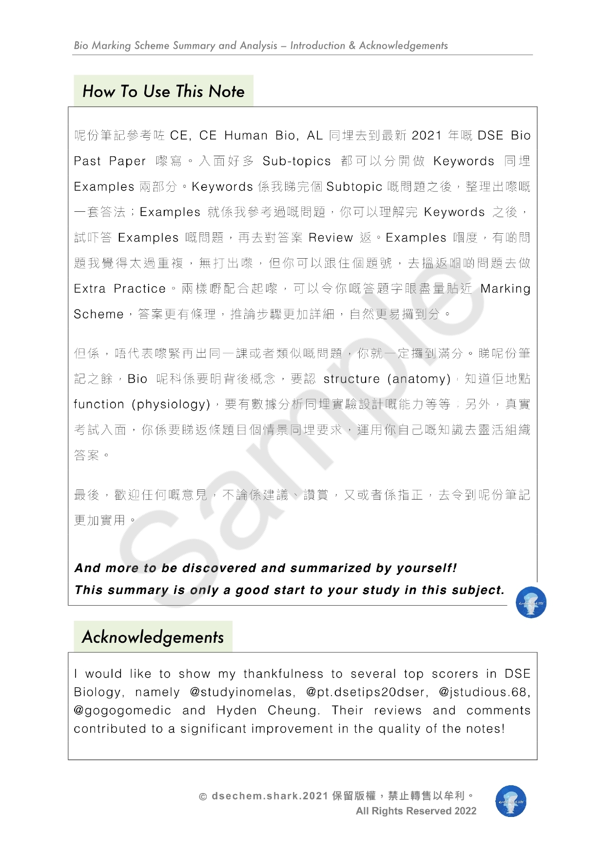 DSE Biology: Marking Scheme Summary & Analysis Notes Series 包括以下筆記: