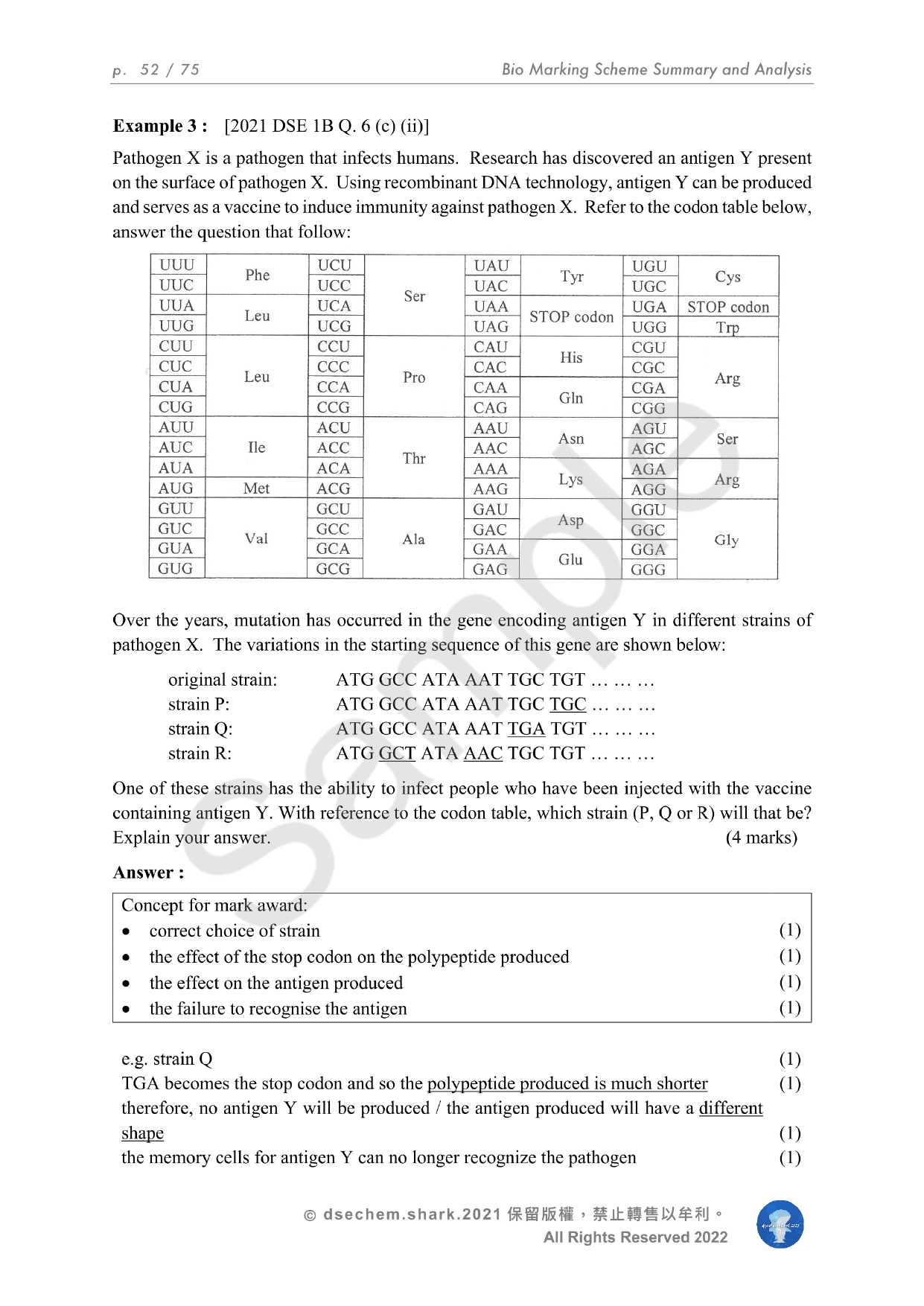 DSE Biology: Marking Scheme Summary & Analysis Notes (S4, S5 & Elective 1)