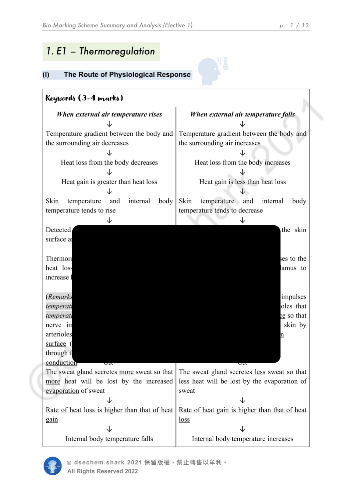 DSE Biology: Marking Scheme Summary & Analysis Notes Series 包括以下筆記: