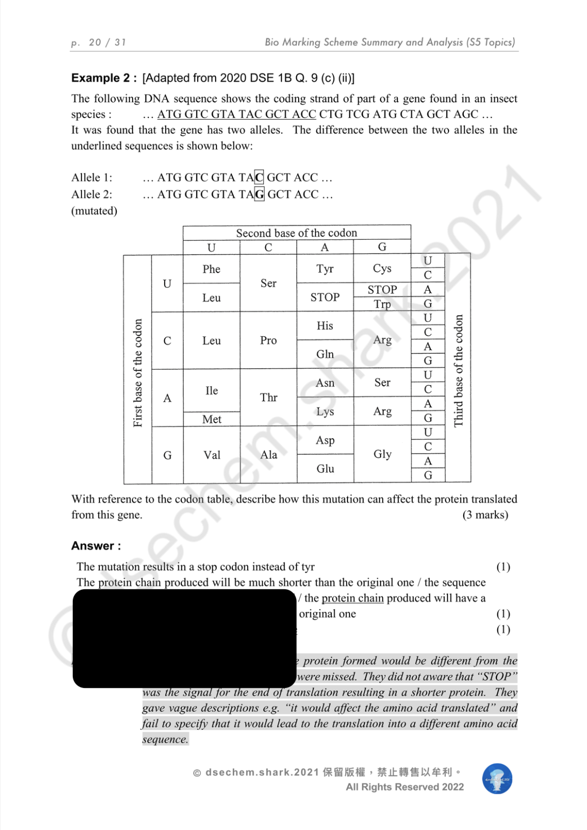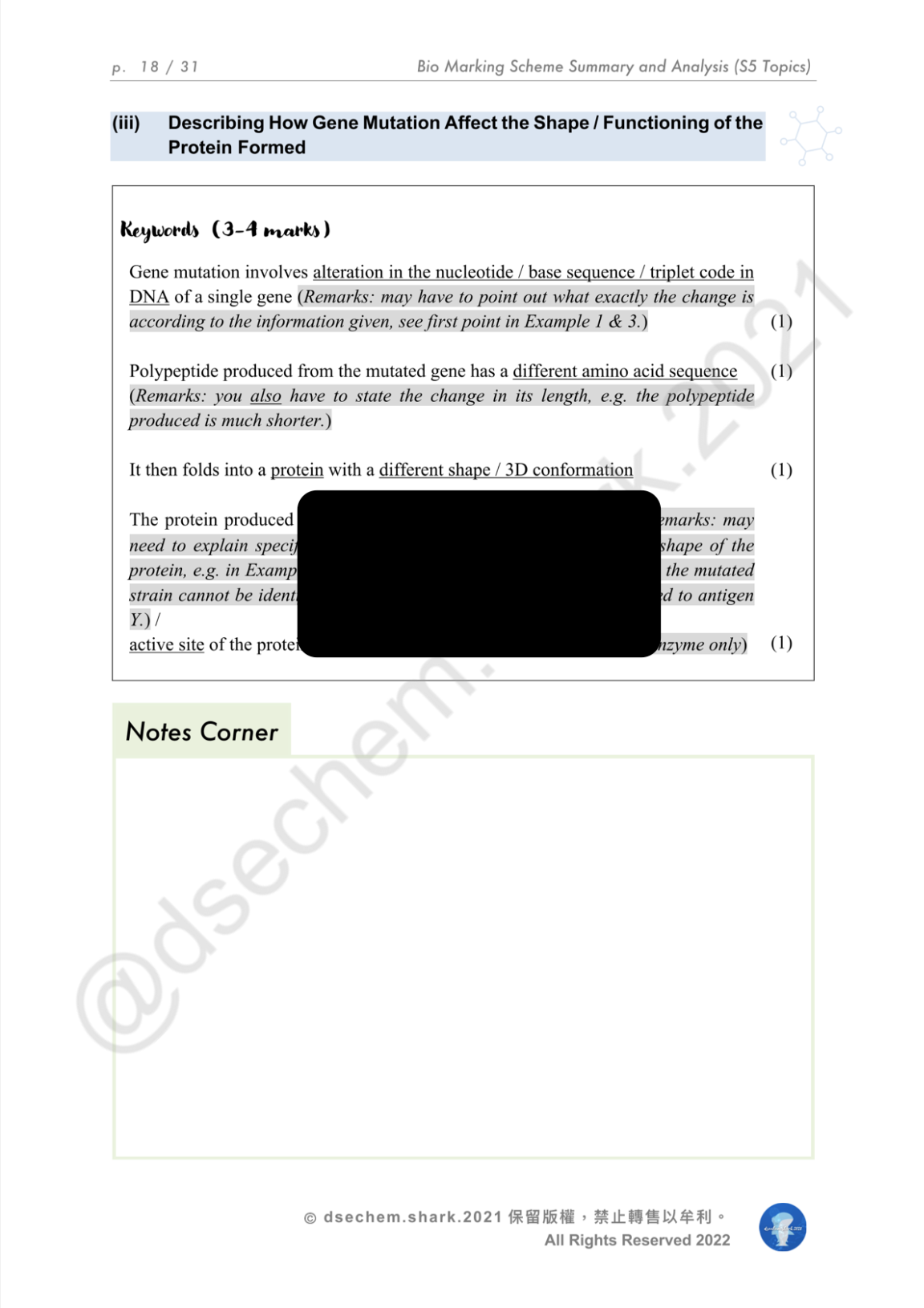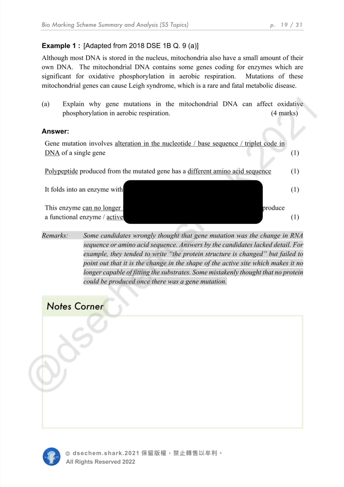 DSE Biology: Marking Scheme Summary & Analysis Notes Series 包括以下筆記: