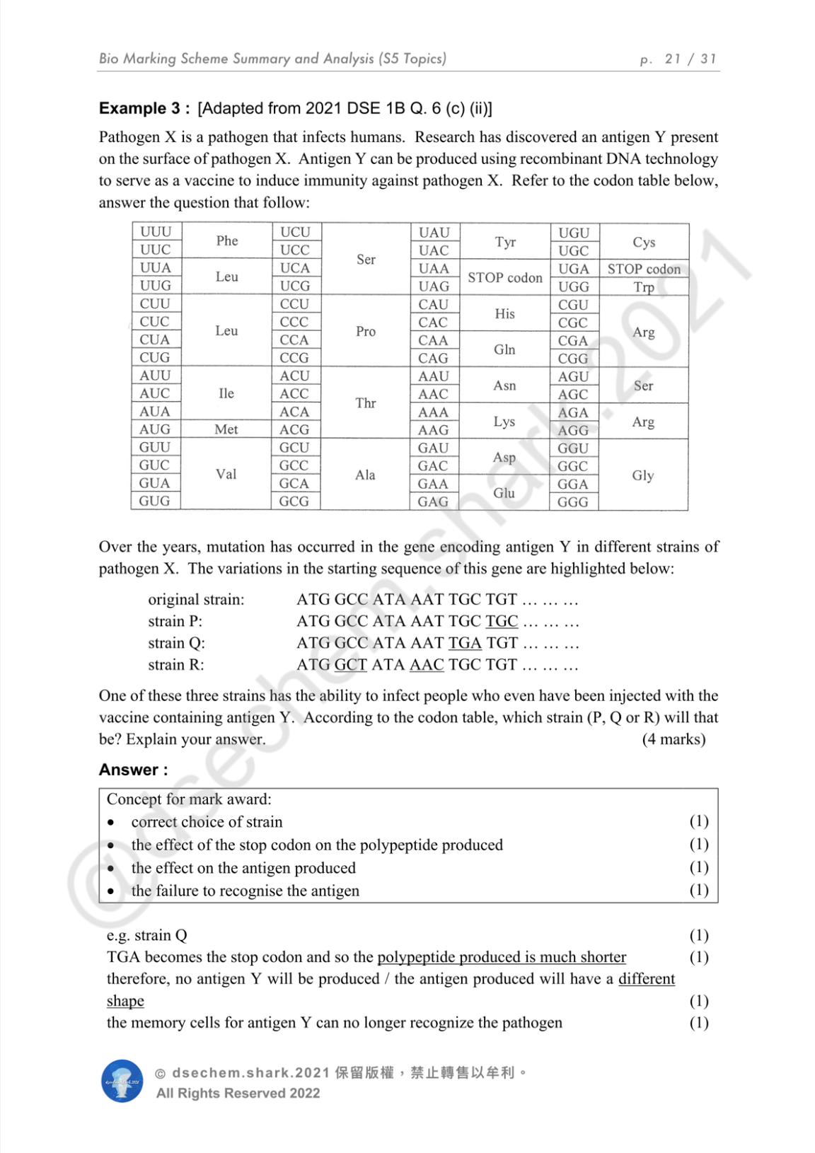 又例如 2021 年問 transmission of nerve impulses across synapse, principle of immunity induced by vaccination, mutating strains affecting antigen shape 總共已經 10 分,但全部都係可以睇以前 past paper 預備好 keyword 嘅題目💫 (小編攞足10分,notes 入面會有 full marks sample!)