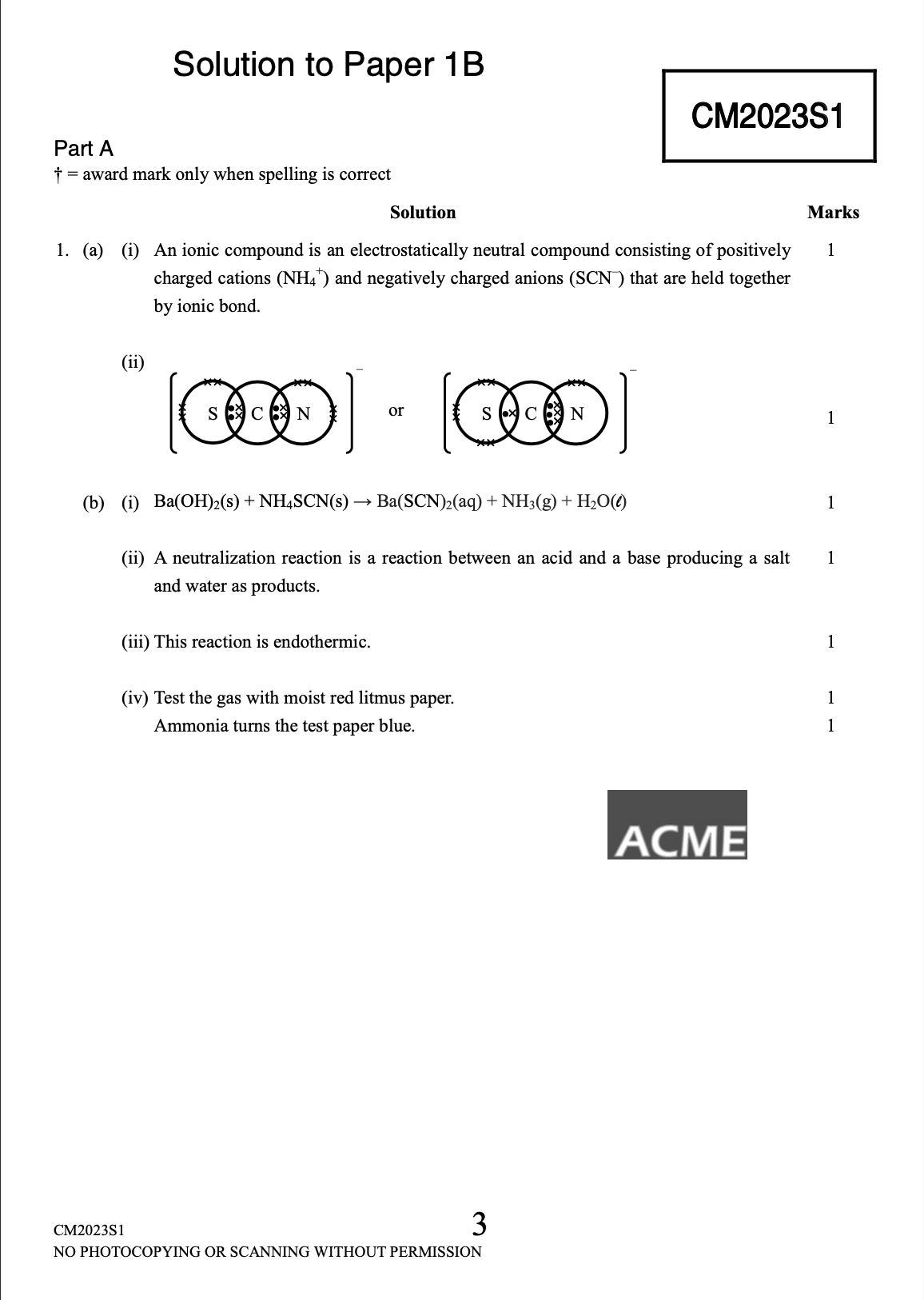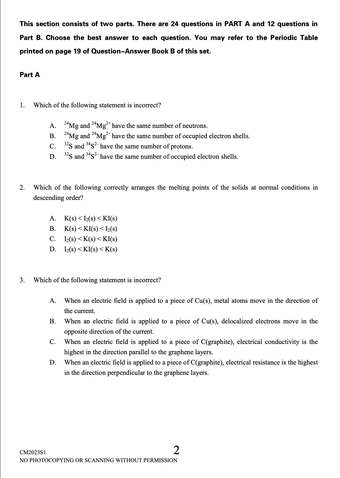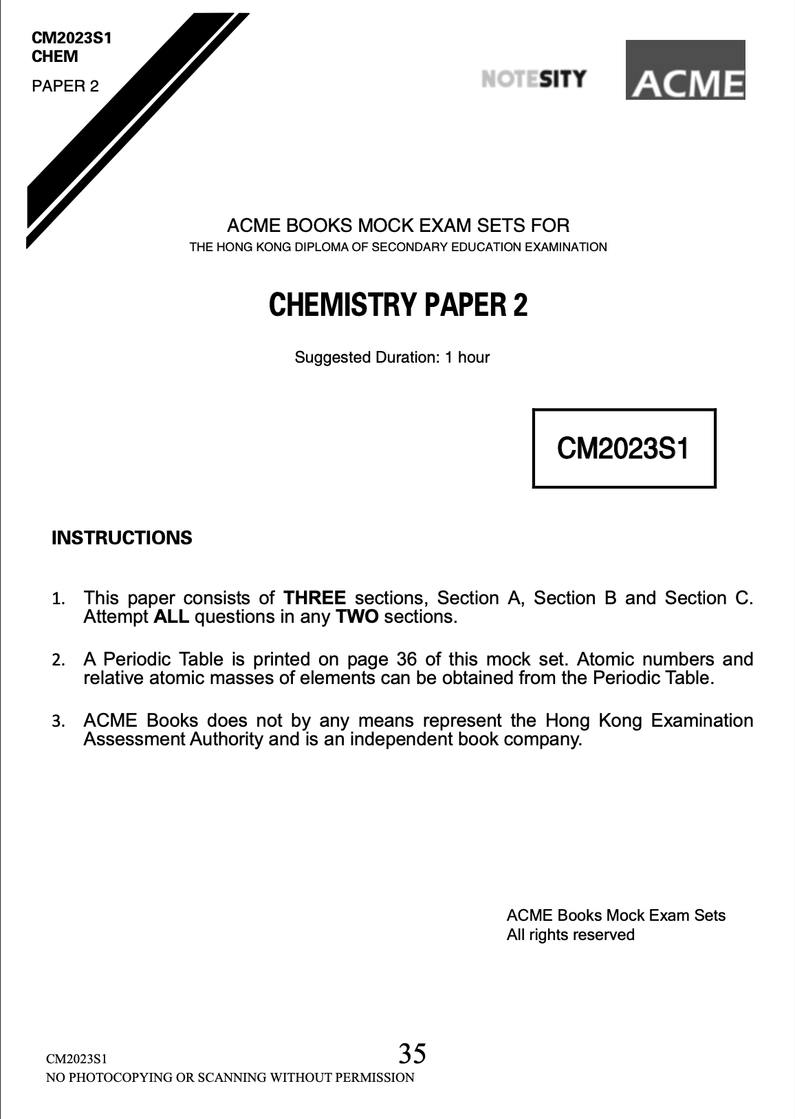 - 2023 DSE Chemistry Mock Set 1 (此模擬試卷)