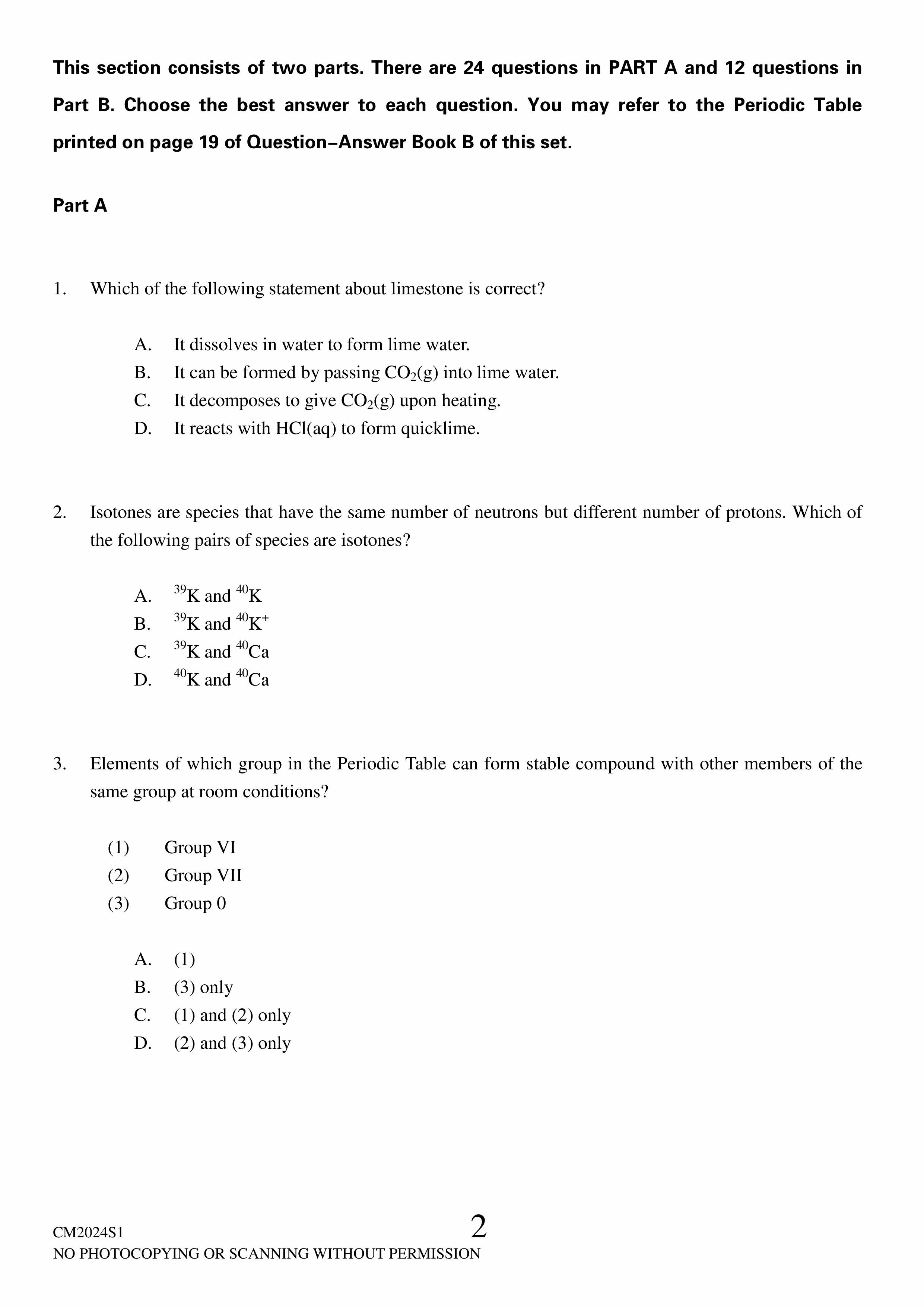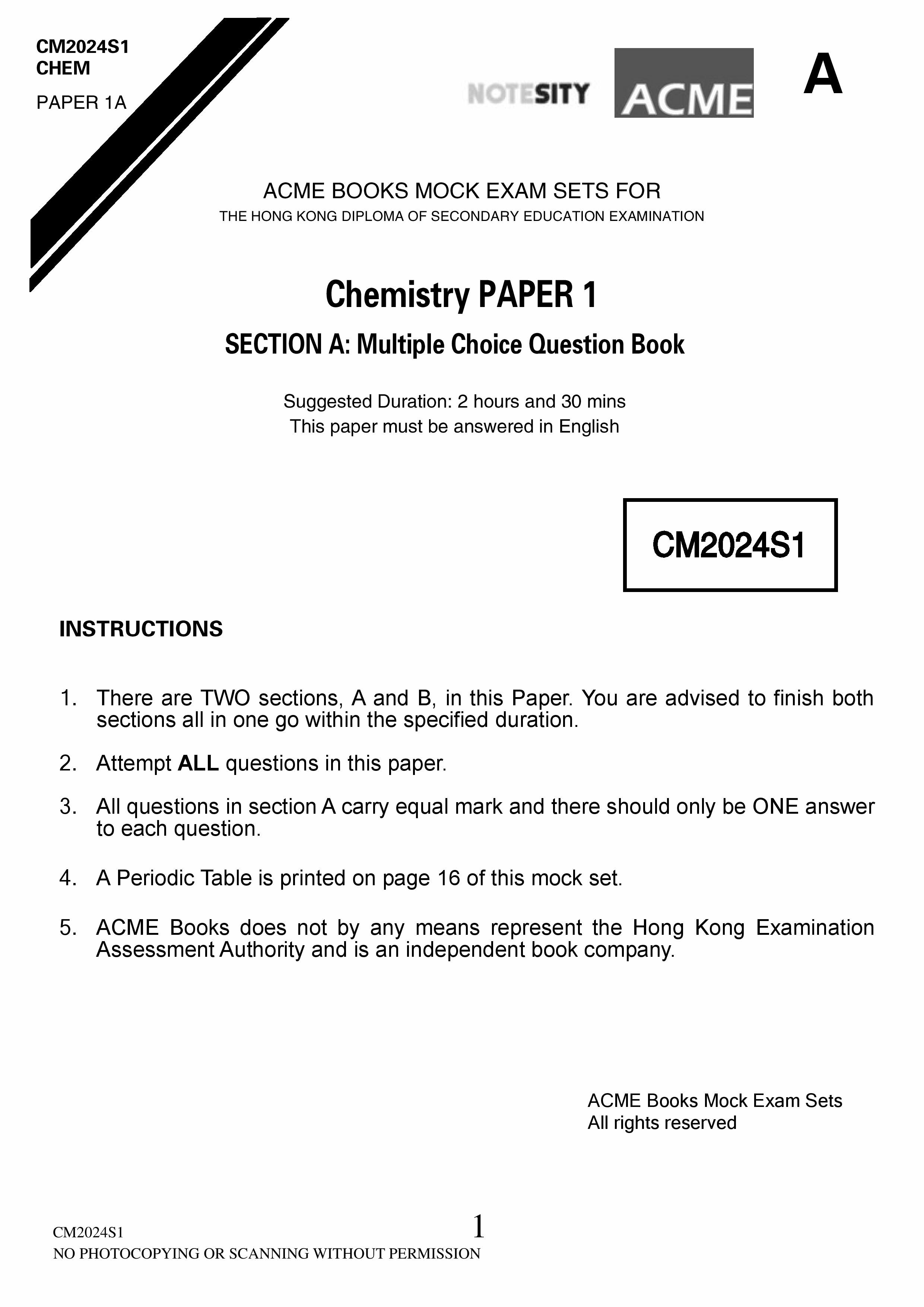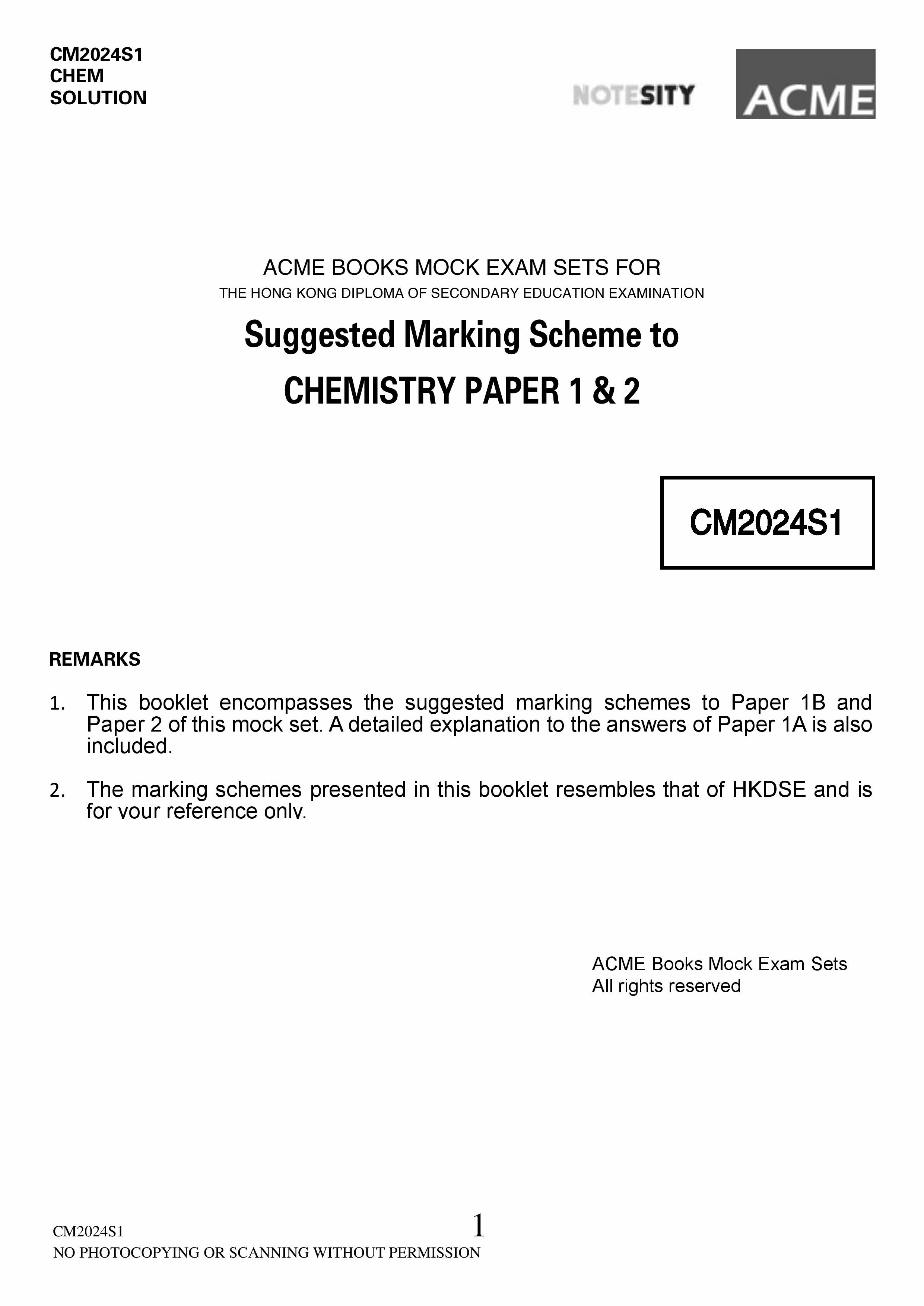 - 2024 DSE Chemistry Mock Set 1 (此模擬試卷)