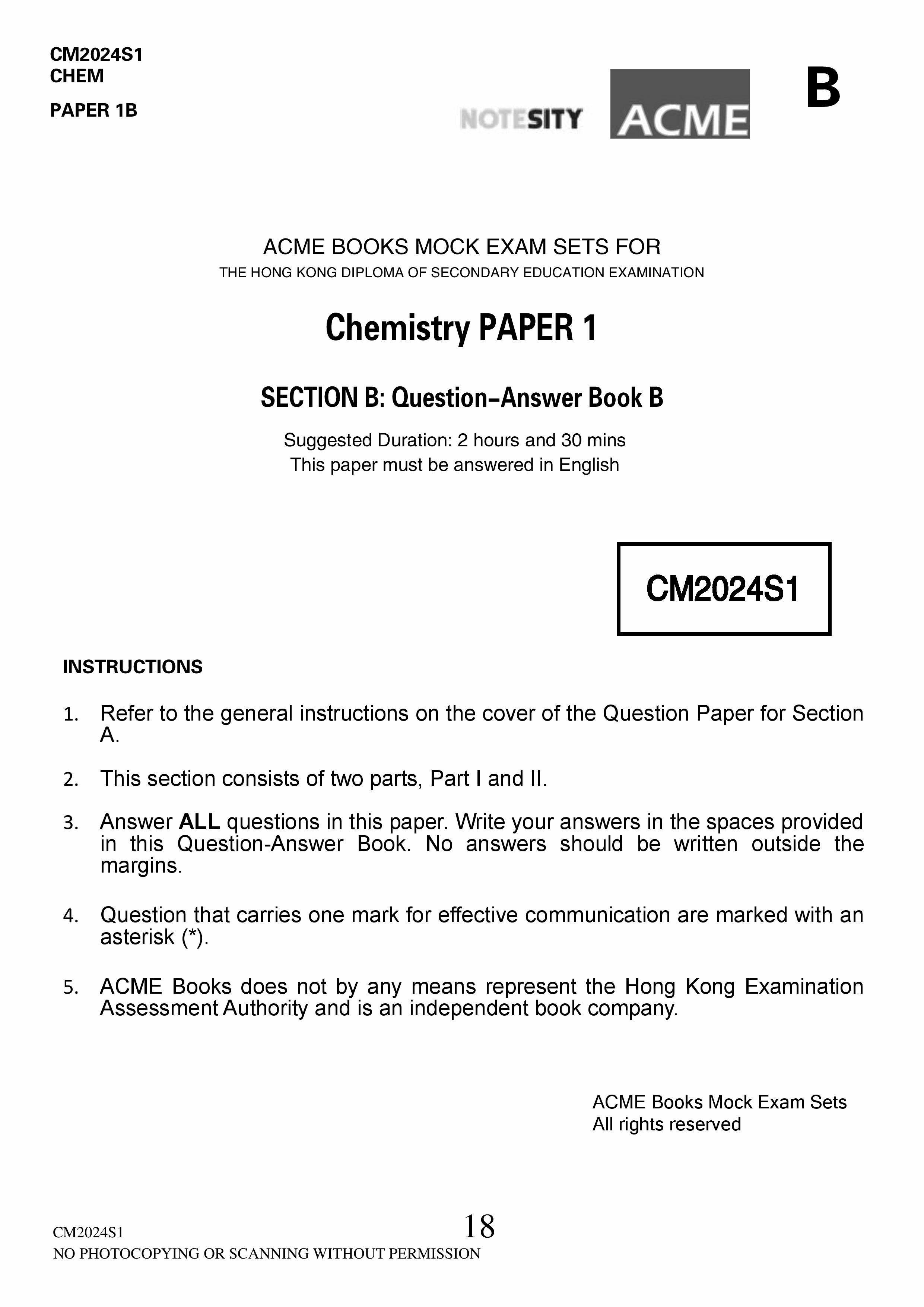 ACME BOOKS DSE Chemistry Mock Paper Set 收錄一整套 Paper 1A、1B、2、Suggested Solutions 及 Paper 1A 詳解,助你全面應對 DSE 考試!