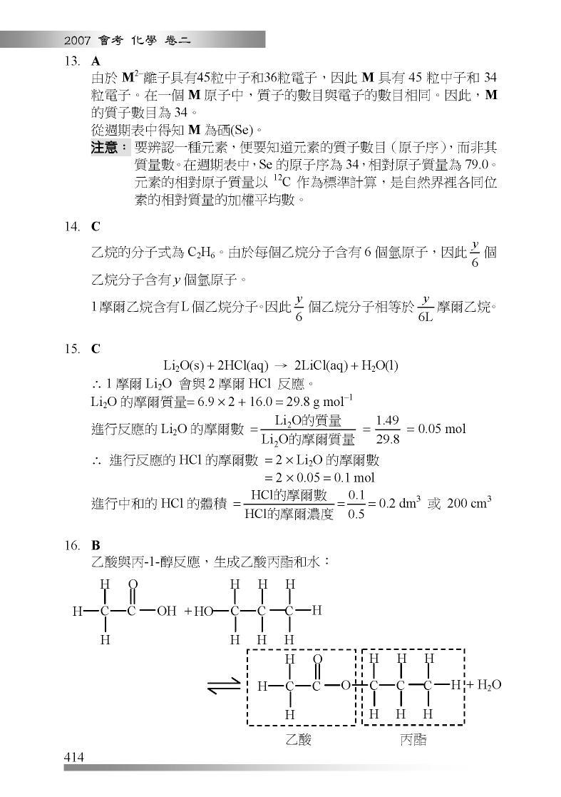 文憑試化學(樣本試卷、練習卷、2012-2022 DSE Past Papers)