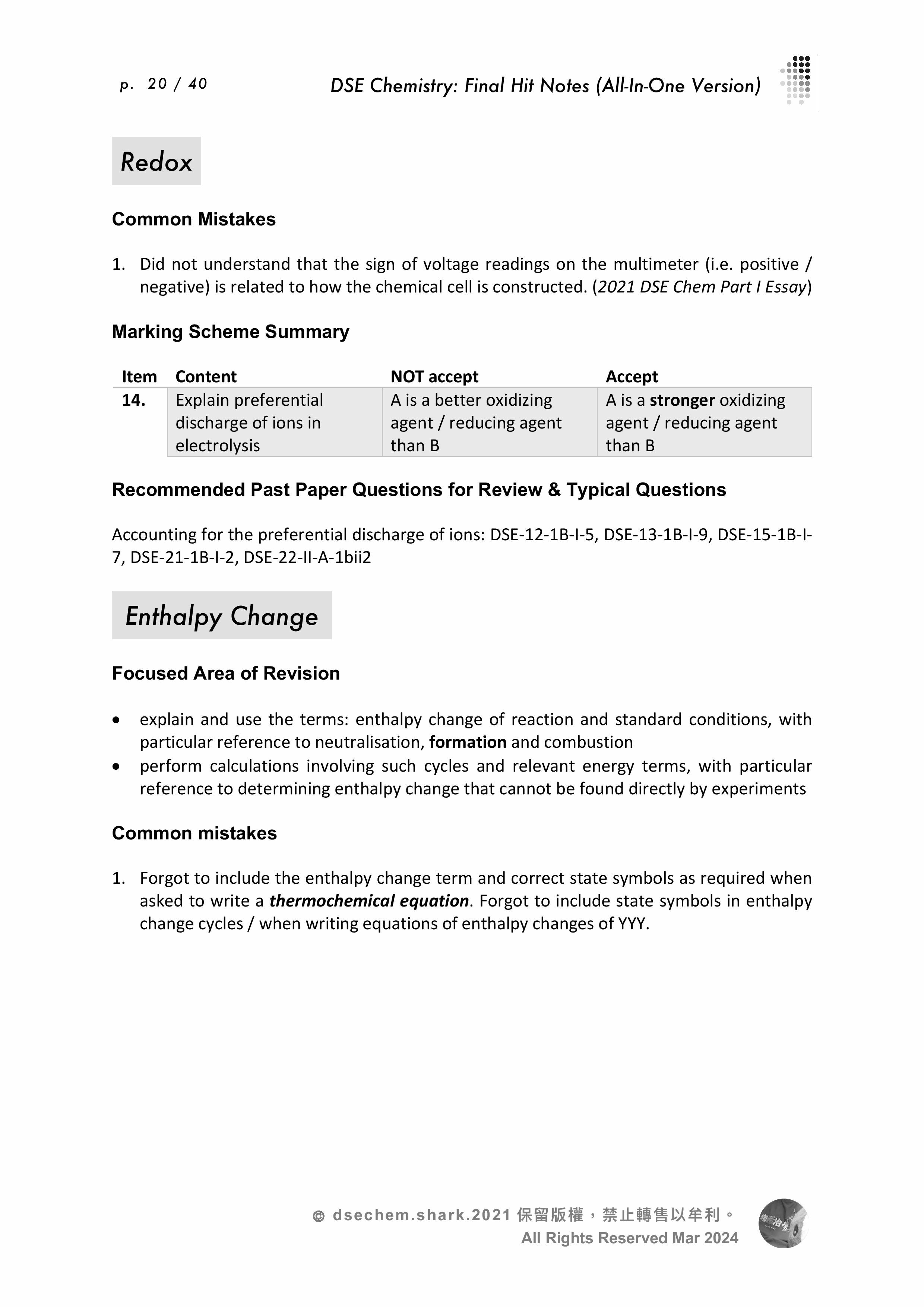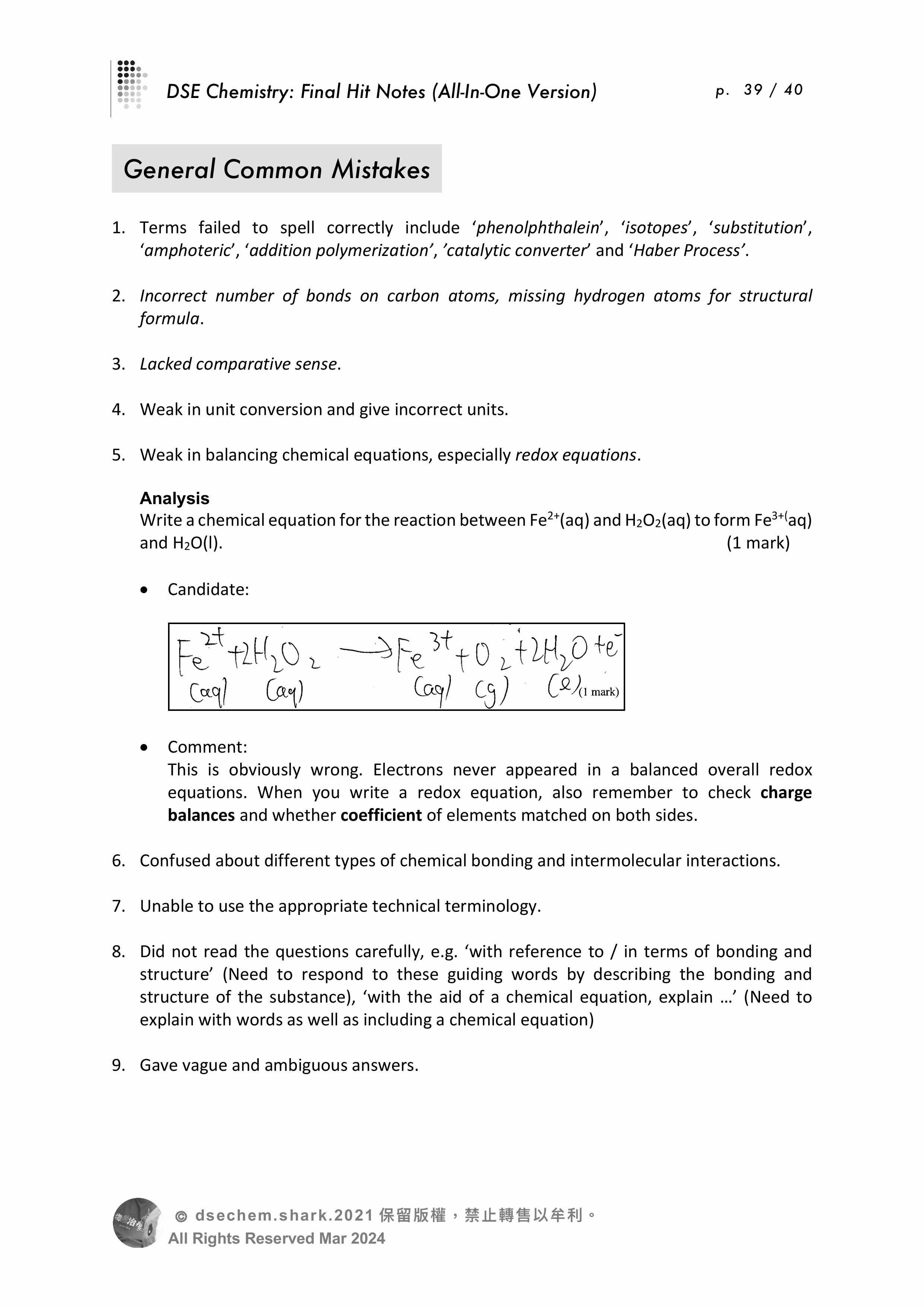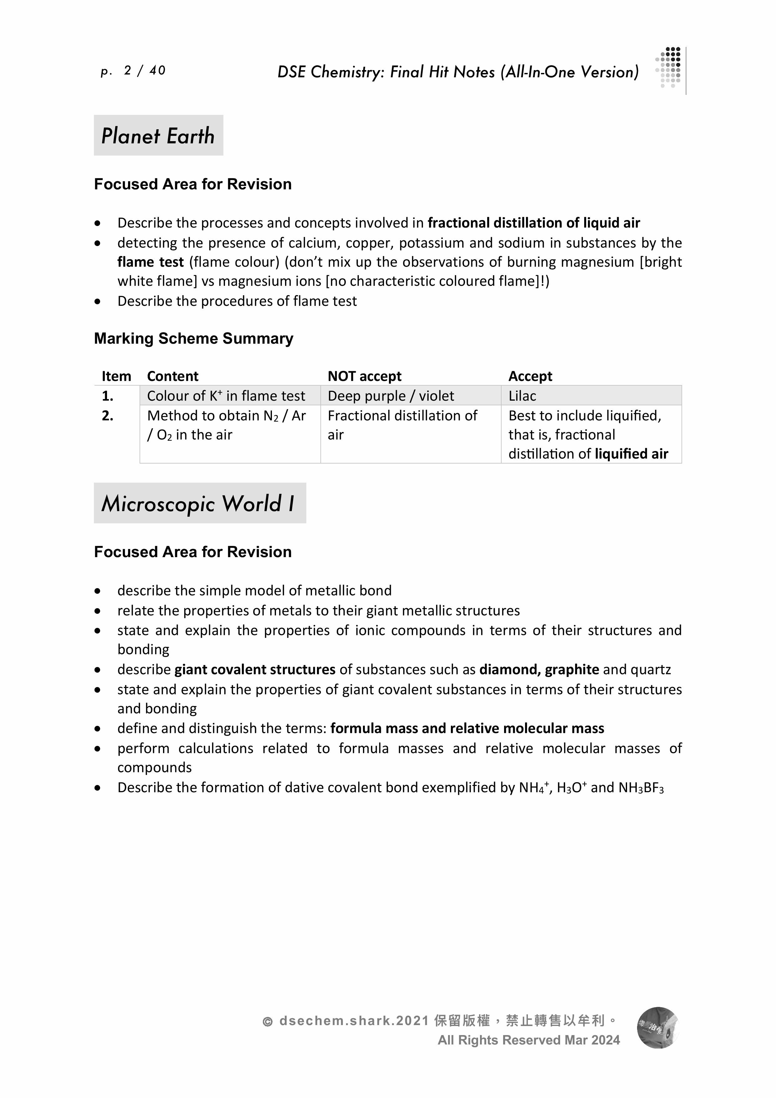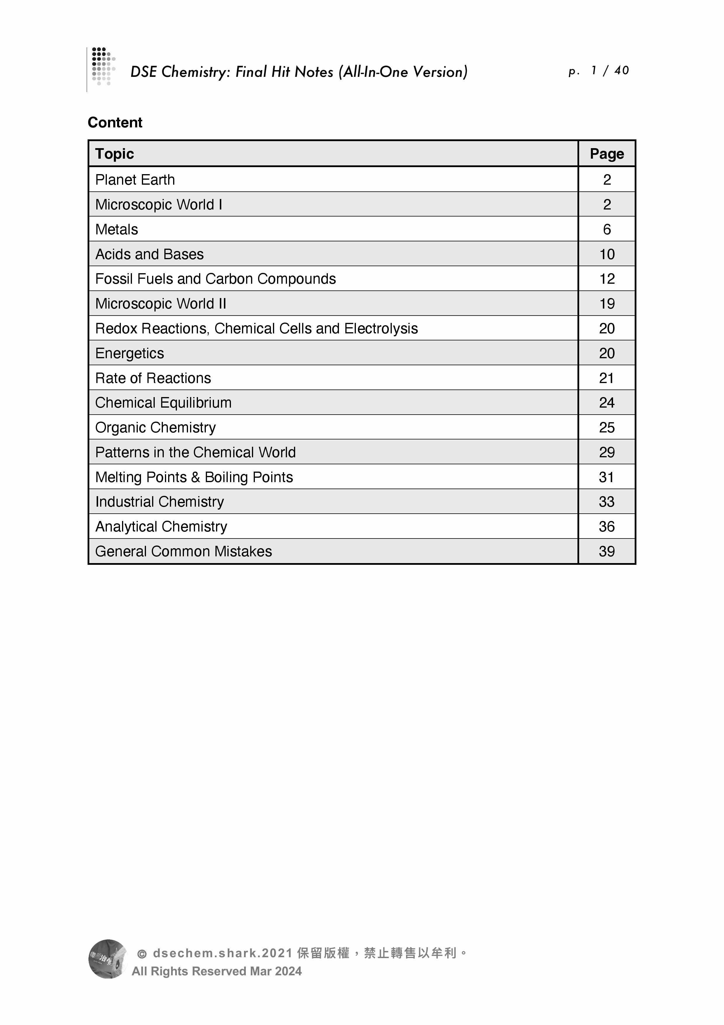筆記係 DSE Chem 14 個 Topic 嘅重要Summary,指引同學最後關頭嘅溫習方向,快速提升同學嘅實戰能力!~