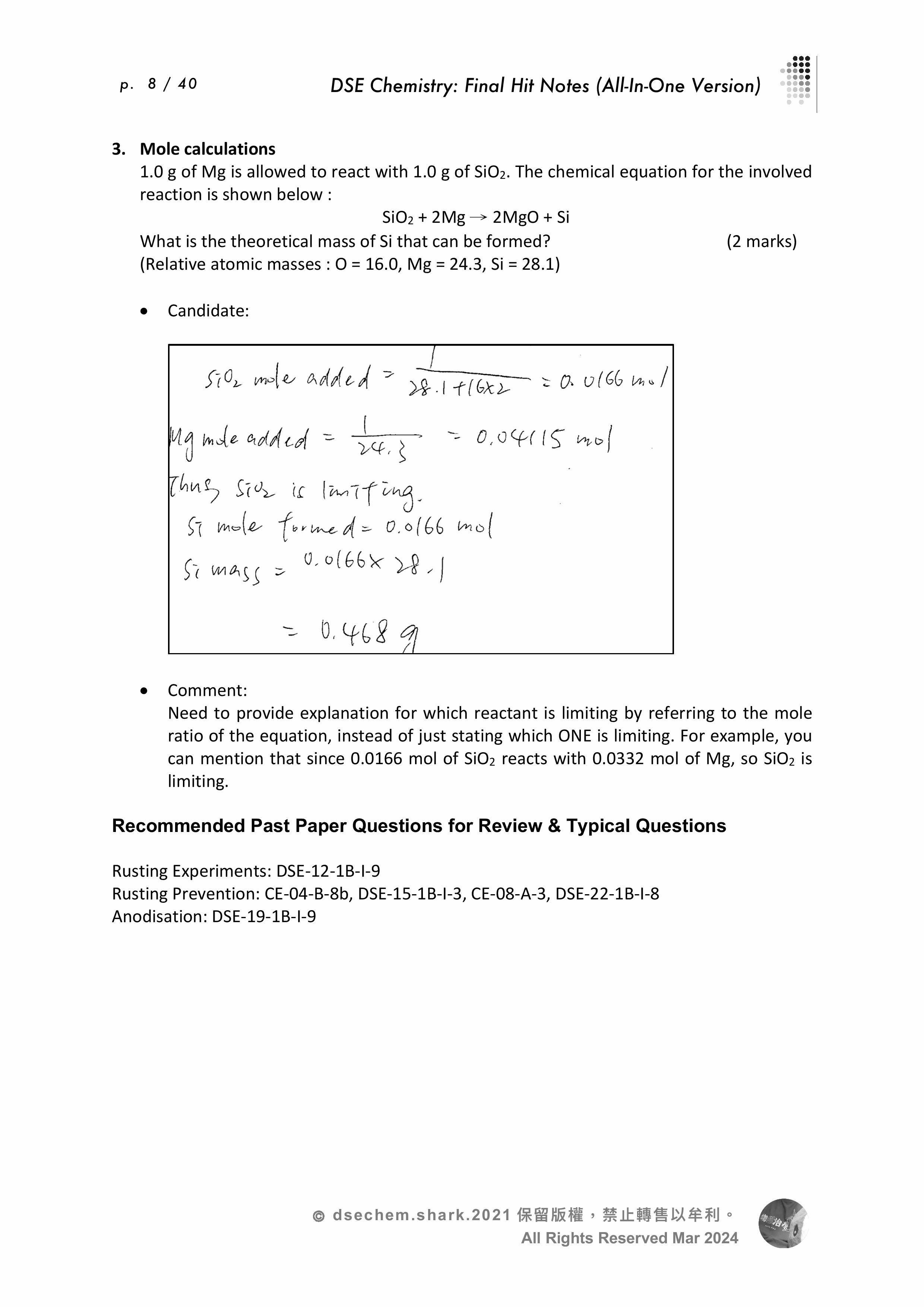 - 2021 DSE Chem 5** (工業化學部分滿分)