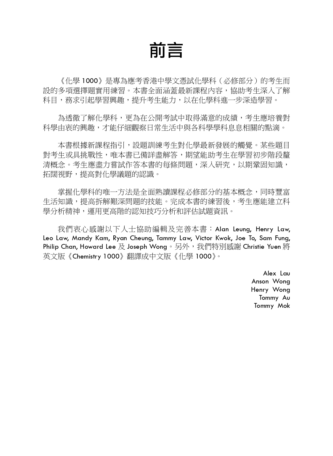 《化學 1000》是專門為香港中學文憑試化學科考生編訂的多項選擇題題庫。