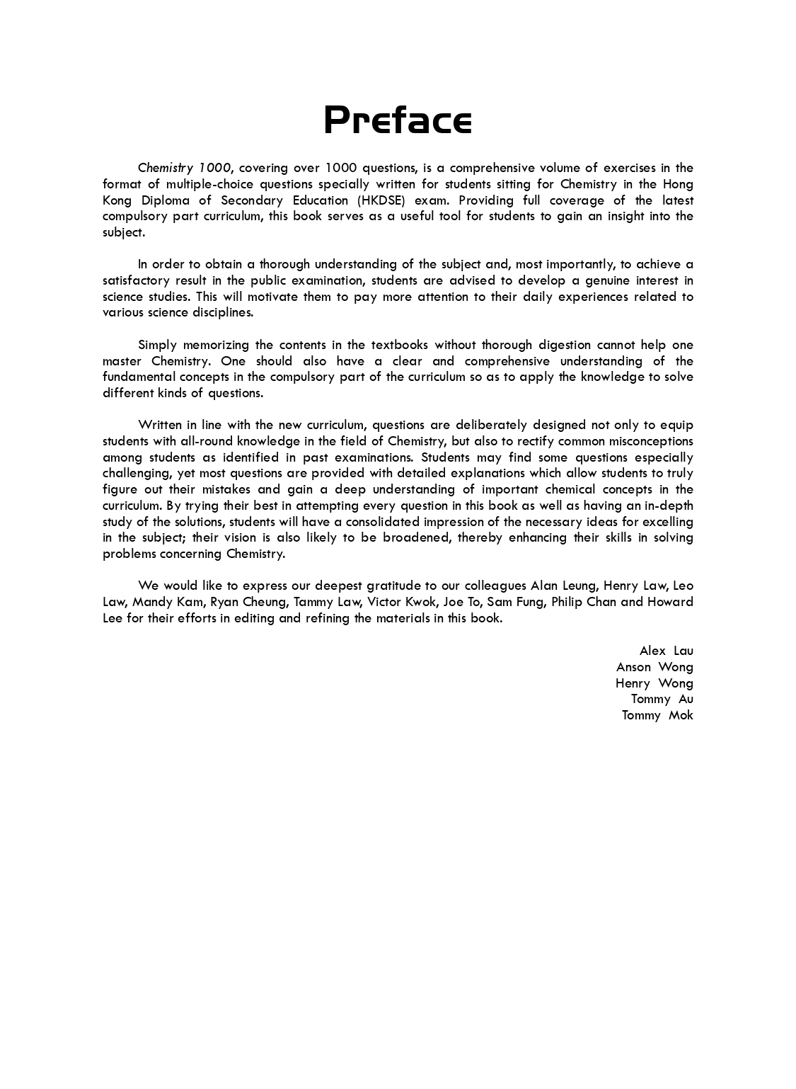 Chemistry 1000 is a comprehensive exercise in the format of 1000 MC questions specially written for students sitting for the HKDSE Chemistry.