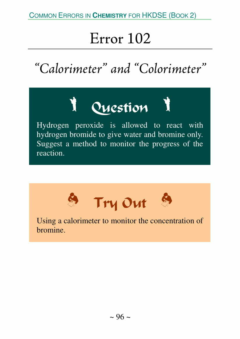 - 此冊(第二冊)內容為新高中化學科必修部分其中七個課題的考生常犯錯誤: