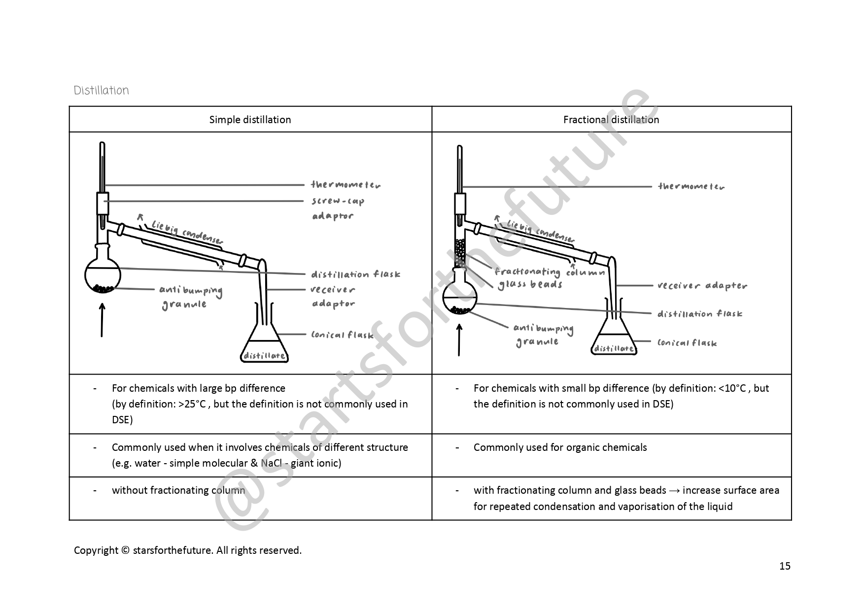 - Templates for recrystallisation, distillation results, liquid-liquid extraction (with clear worked example), chromatography, determine purity