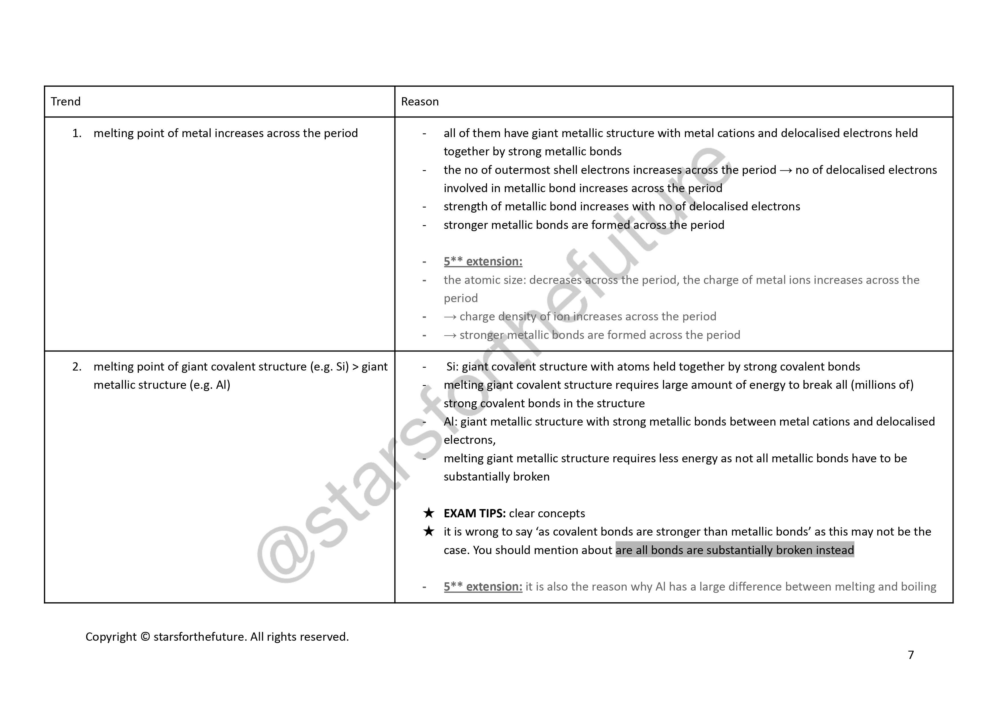 - 5** extension in melting and boiling points of Al and various of melting point down a group