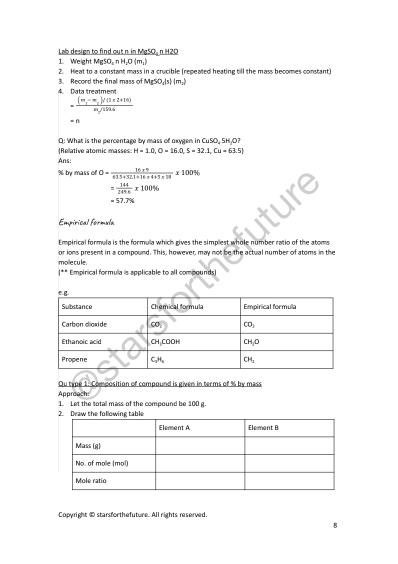 Mole Calculations — Chemistry Notes by Starsforthefuture