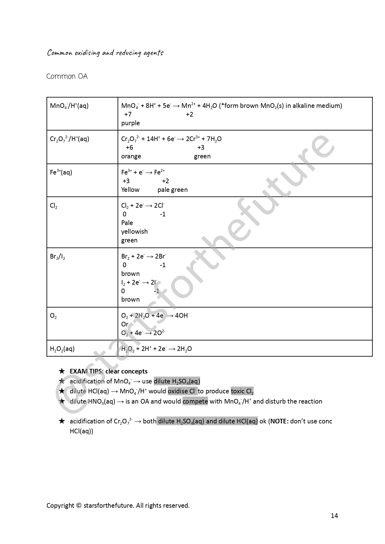 Redox — Chemistry Notes by Starsforthefuture🌟