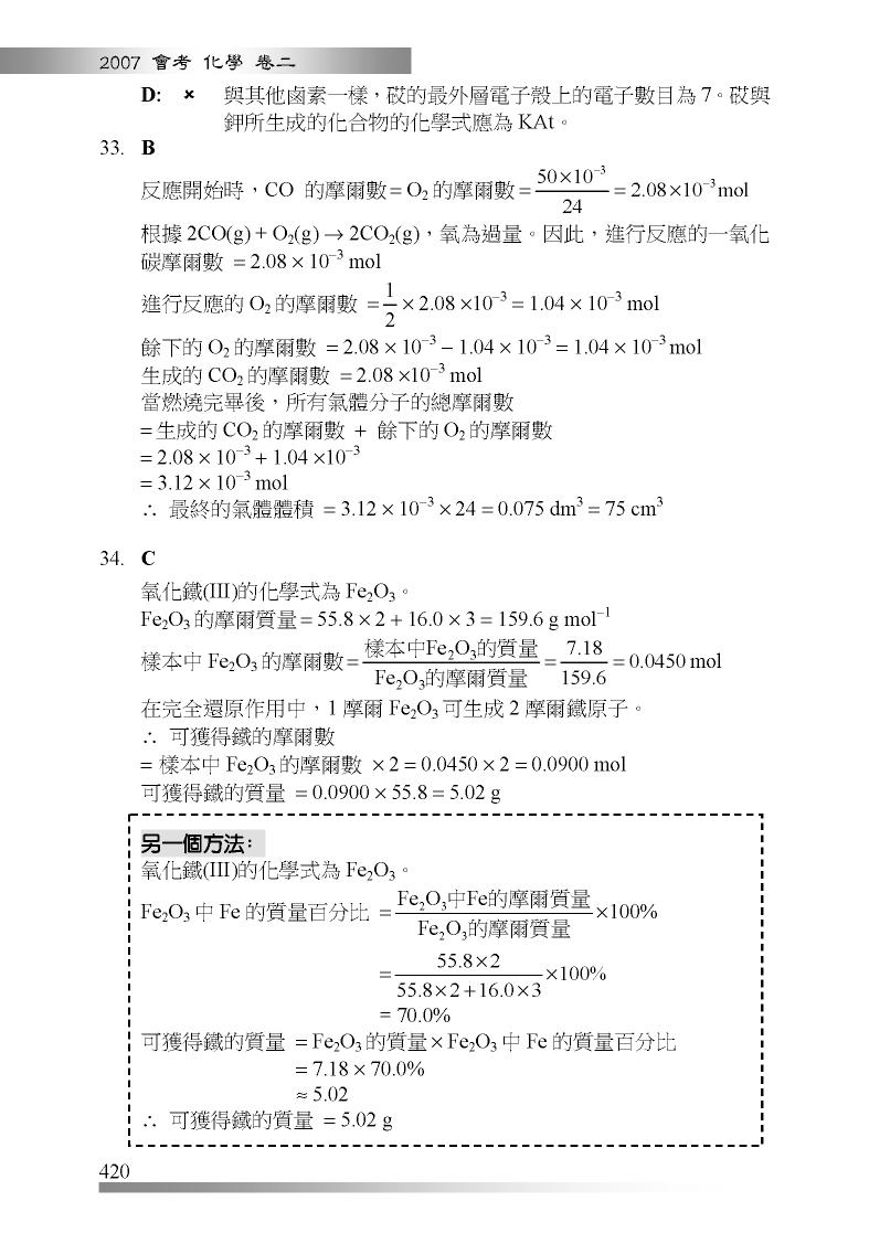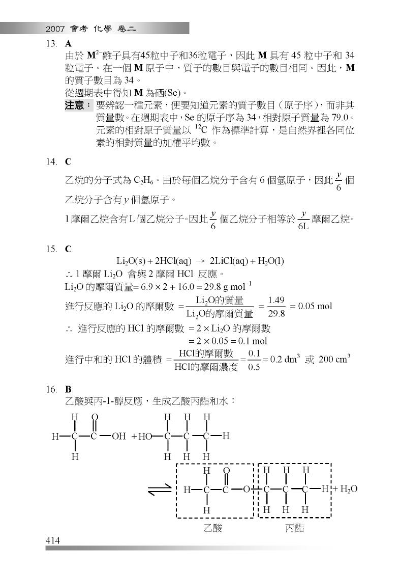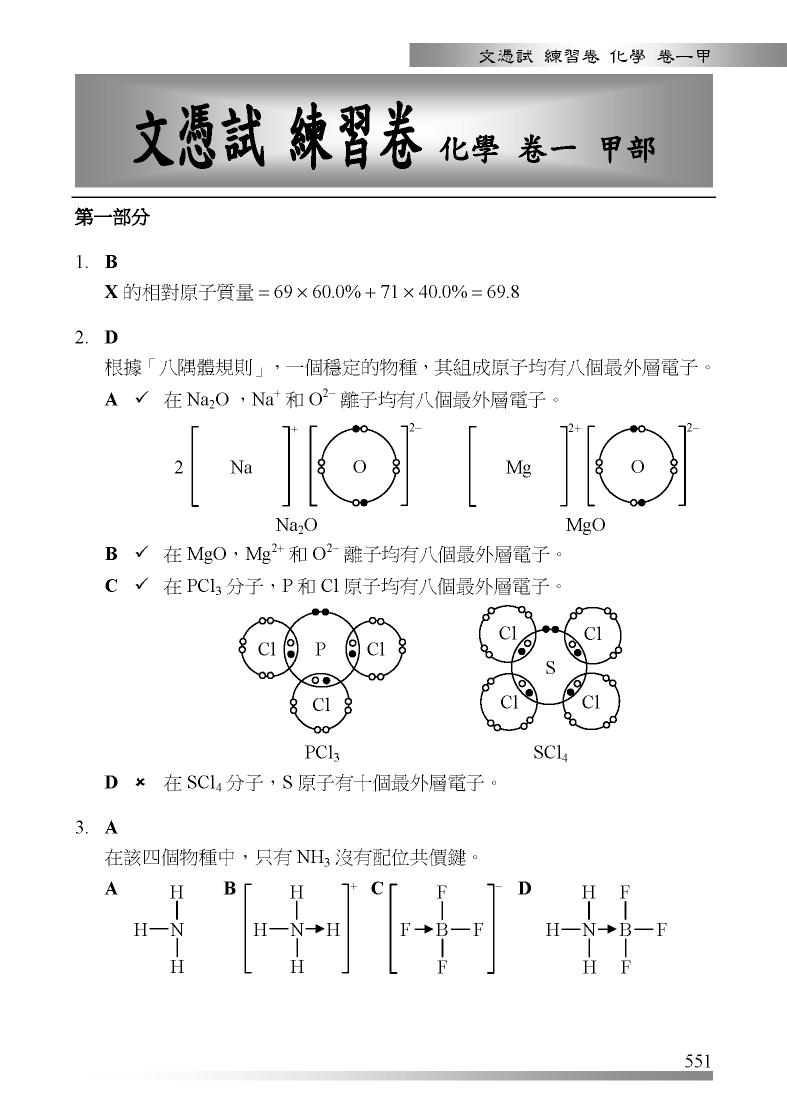 DSE 文憑試化學相關試題參考答案 (中文版)