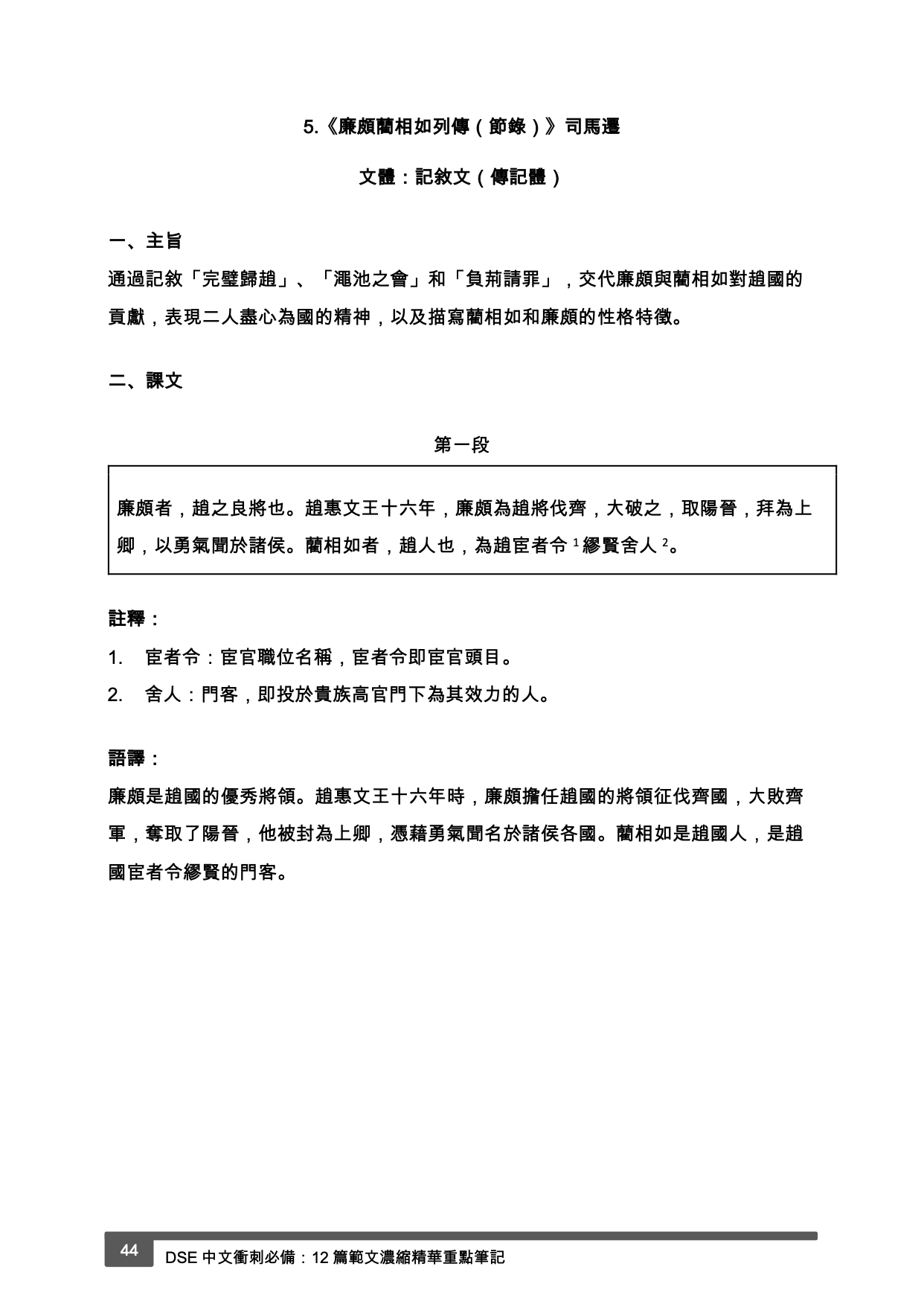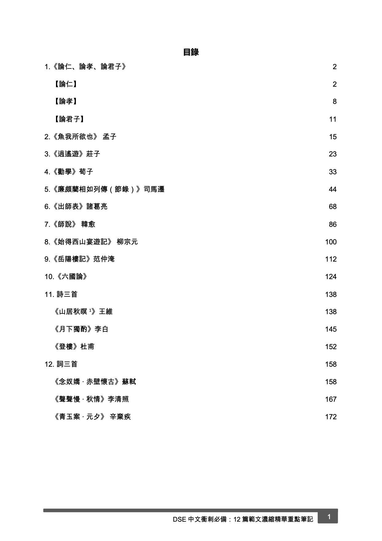 DSE 中文衝刺必備:12篇範文濃縮精華重點筆記【一件免運費】