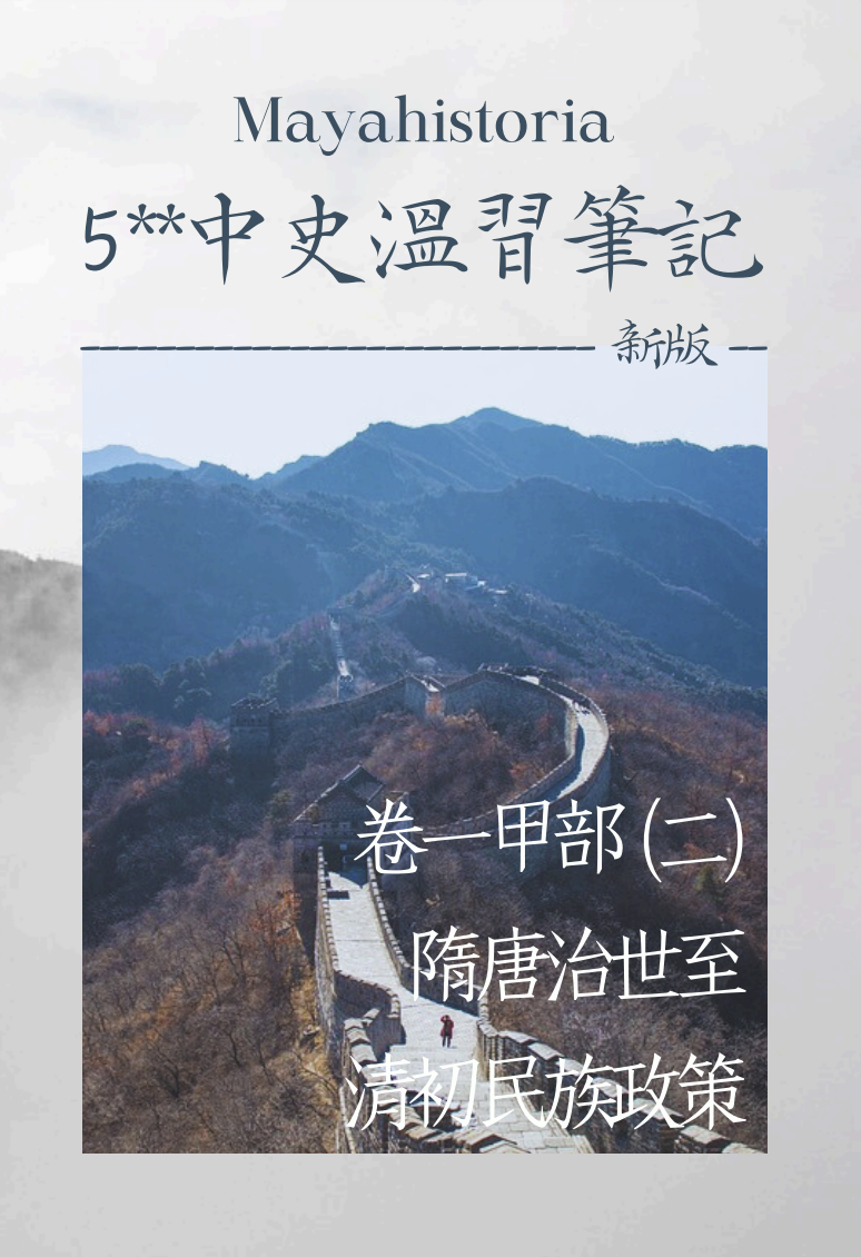 [新版]5**中史溫習筆記:卷一甲部(二)隋唐至清初民族政策
