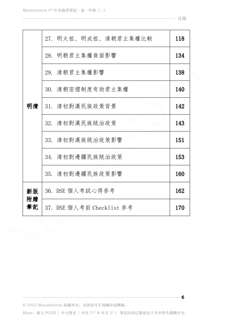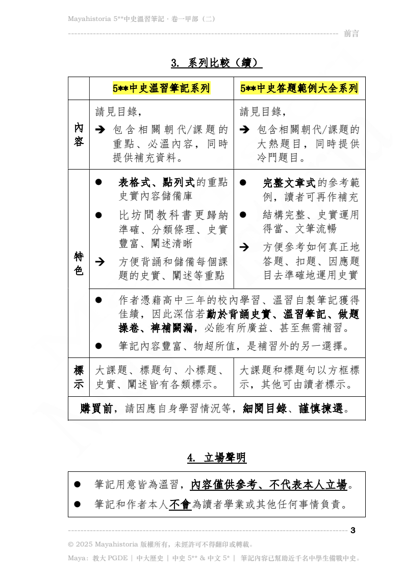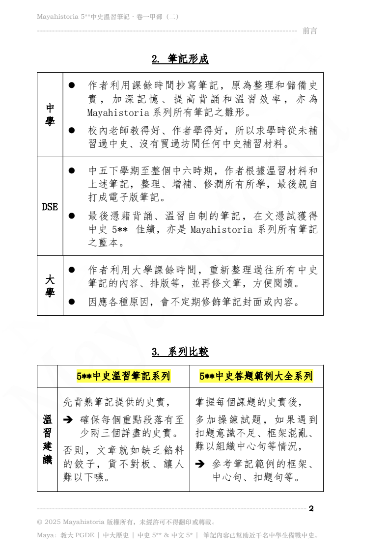 - 筆記適合所有有興趣選修/正在修讀/自修中史的同學,無論已否決定卷一「專攻」甲部或乙部,同學亦可基本溫習所有範圍後,再擇而精讀。