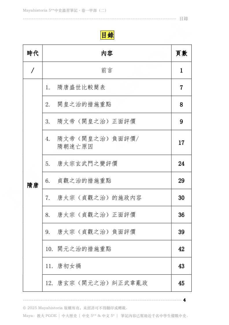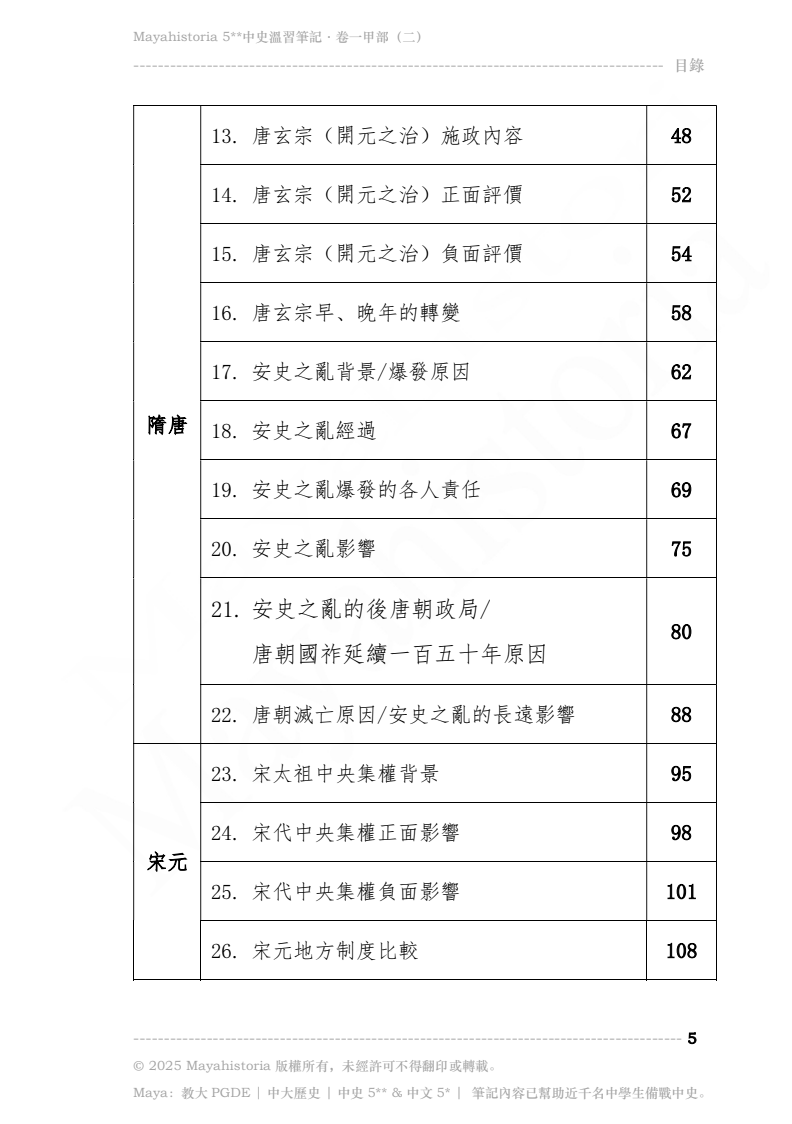- 涵蓋文憑試中史卷一甲部「隋唐治世至清初民族政策」所有範圍,請看本書目錄。