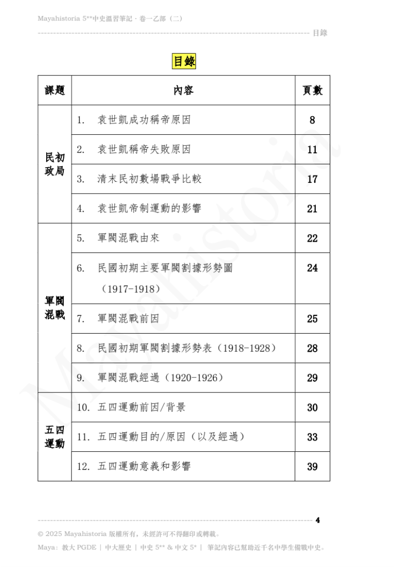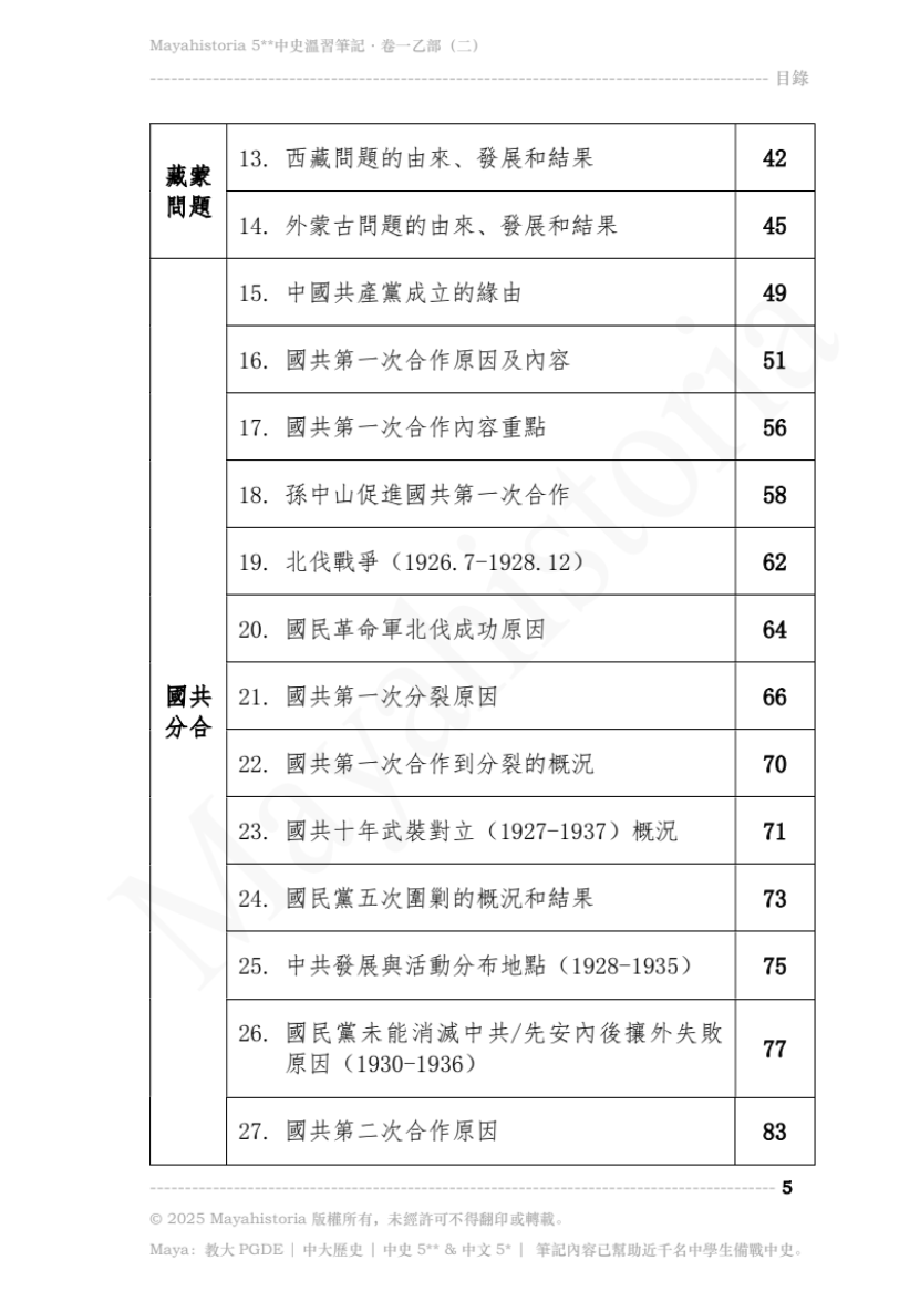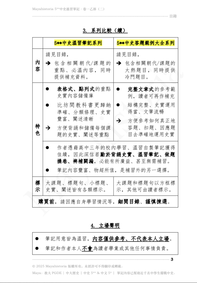 - 筆記適合所有有興趣選修/正在修讀/自修中史的同學,無論已否決定卷一「專攻」甲部或乙部,同學亦可基本溫習所有範圍後,再擇而精讀。