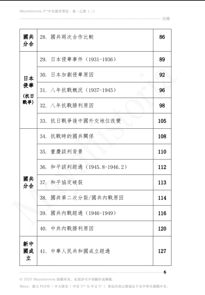 - 涵蓋文憑試中史卷一乙部「辛亥革命至國共內戰、中華人民共和國成立」所有範圍,請看本書目錄。