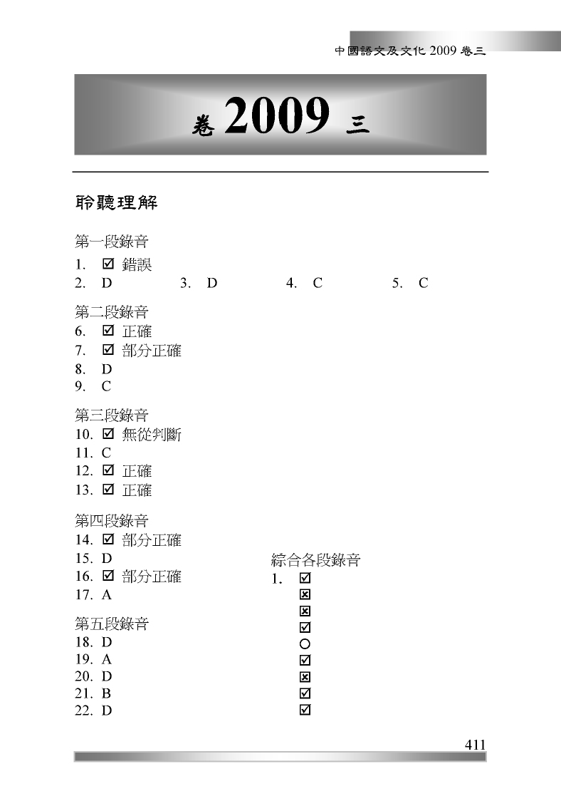 會考中國語文(2007-11 新課程) - 包括閱讀能力、寫作能力、聆聽能力、綜合能力考核