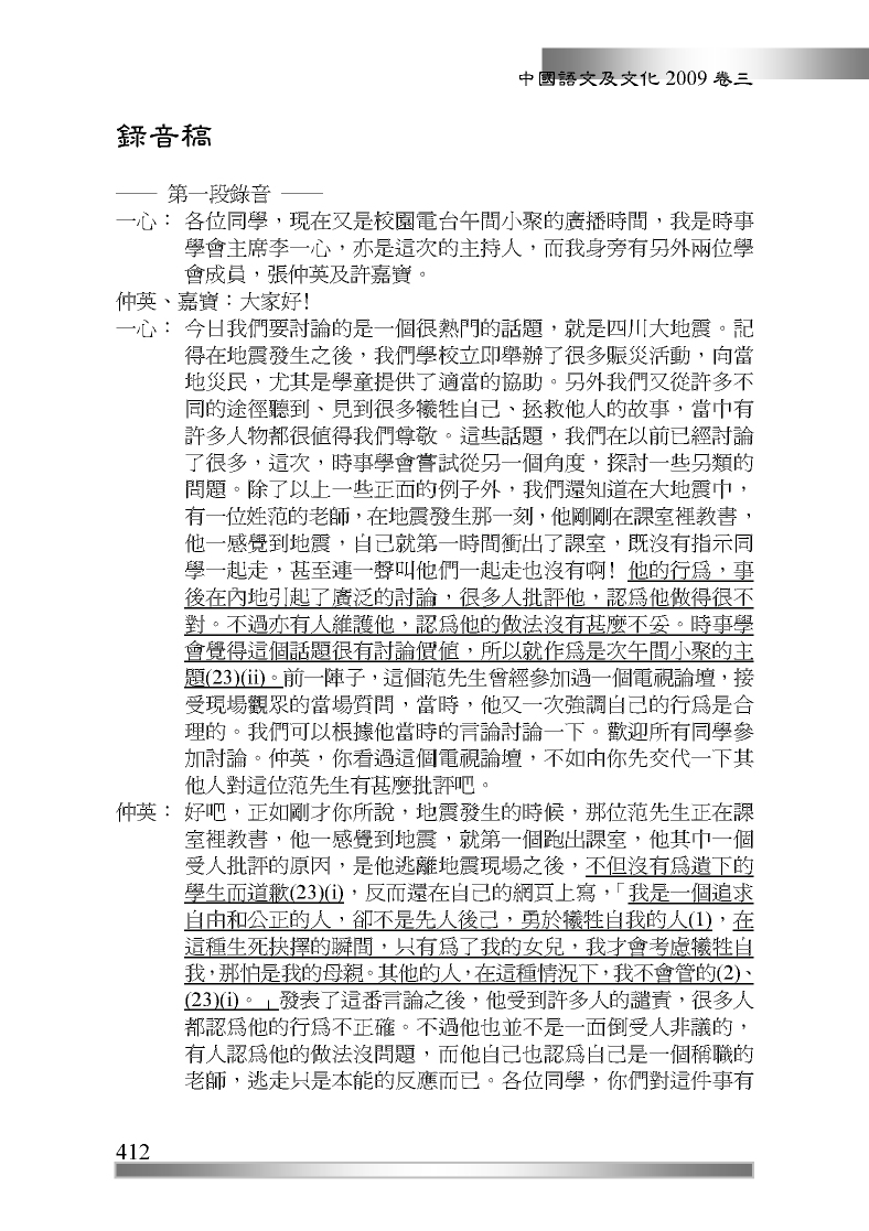 附詳細聆聽錄音講稿,並標示答案出現位置