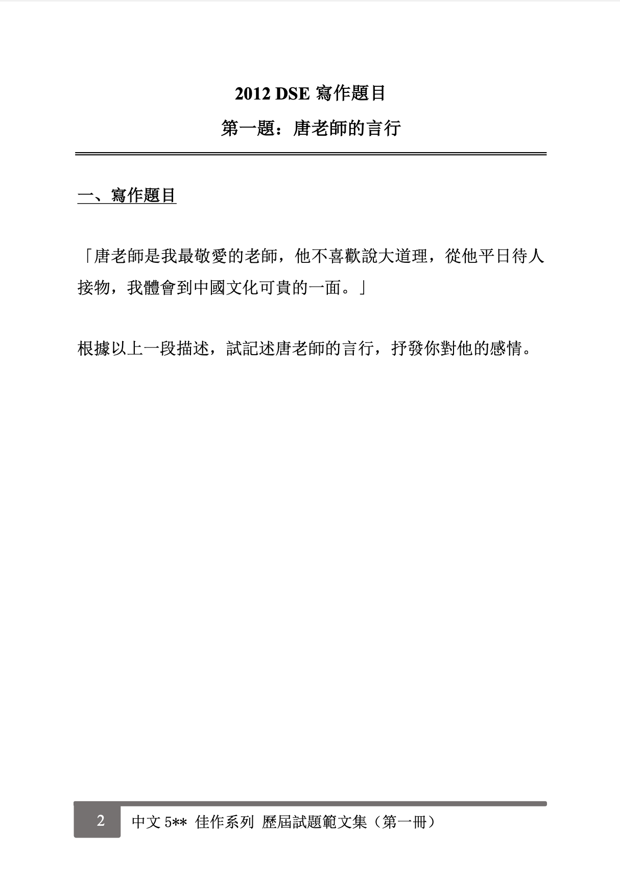 想睇埋其他 DSE 考試年份嘅中文作文範文?可以買埋其他《中文5**佳作系列 歷屆試題範文集》系列嘅其他筆記!