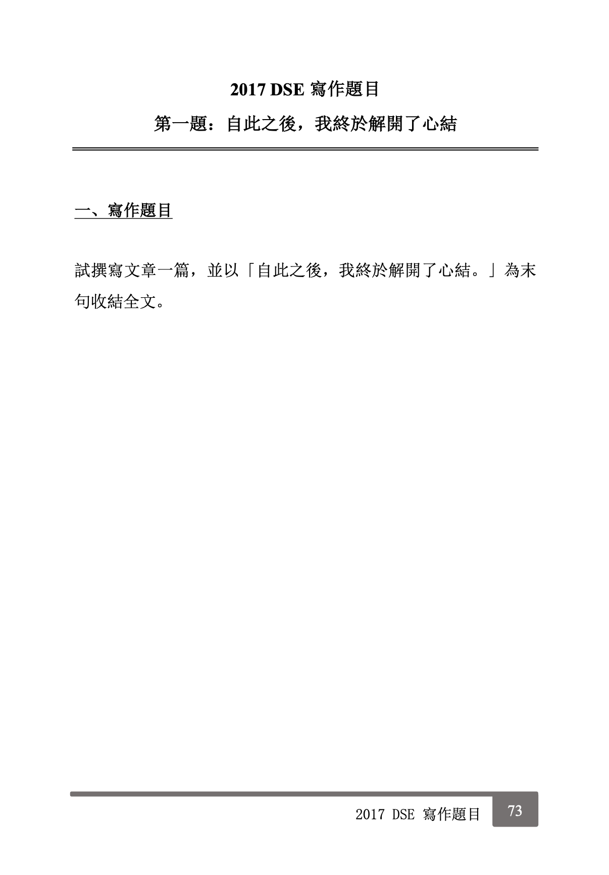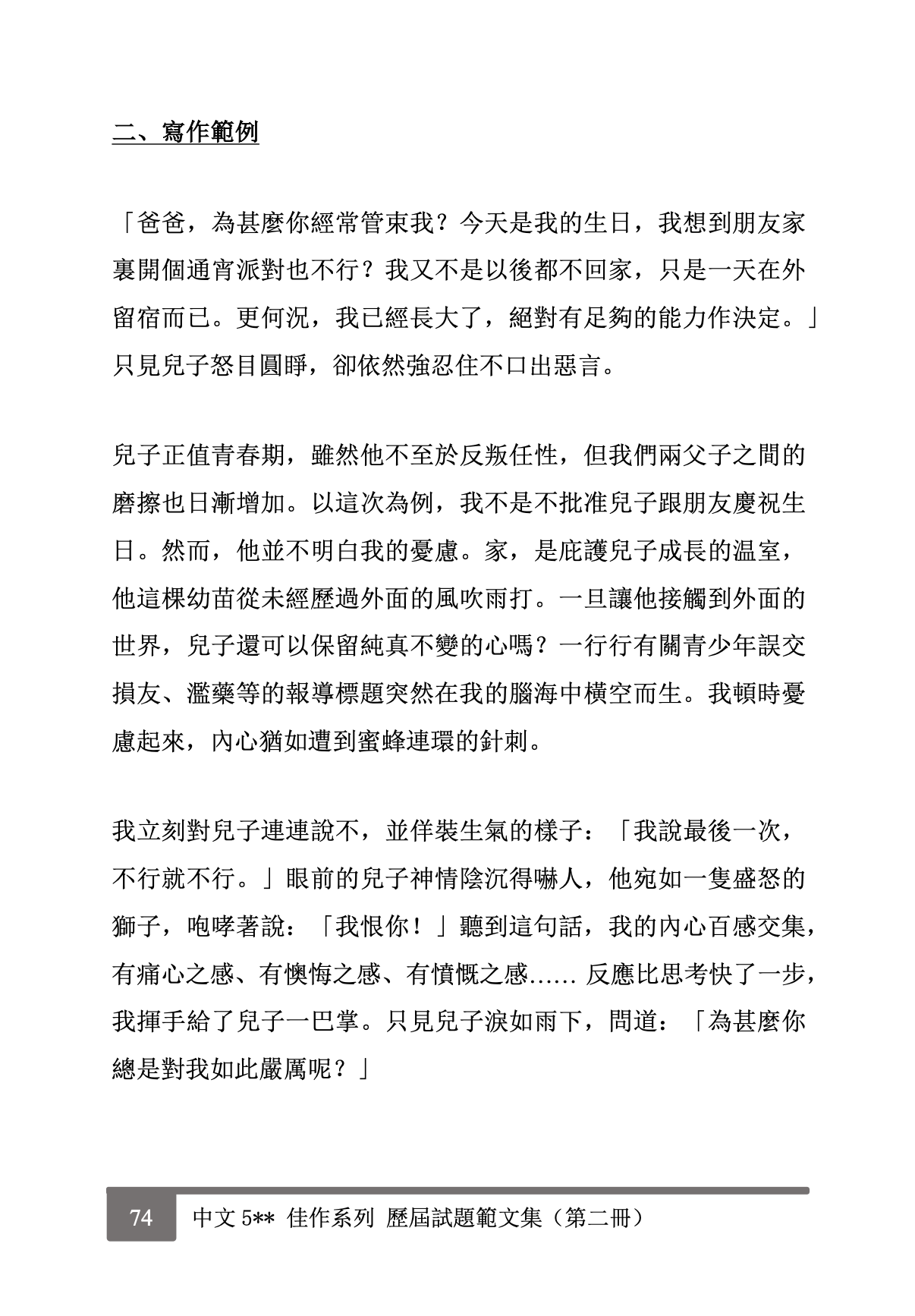 本書收錄9篇寫作範文,涵蓋 2015-2017 DSE 中文作文題目,包括: