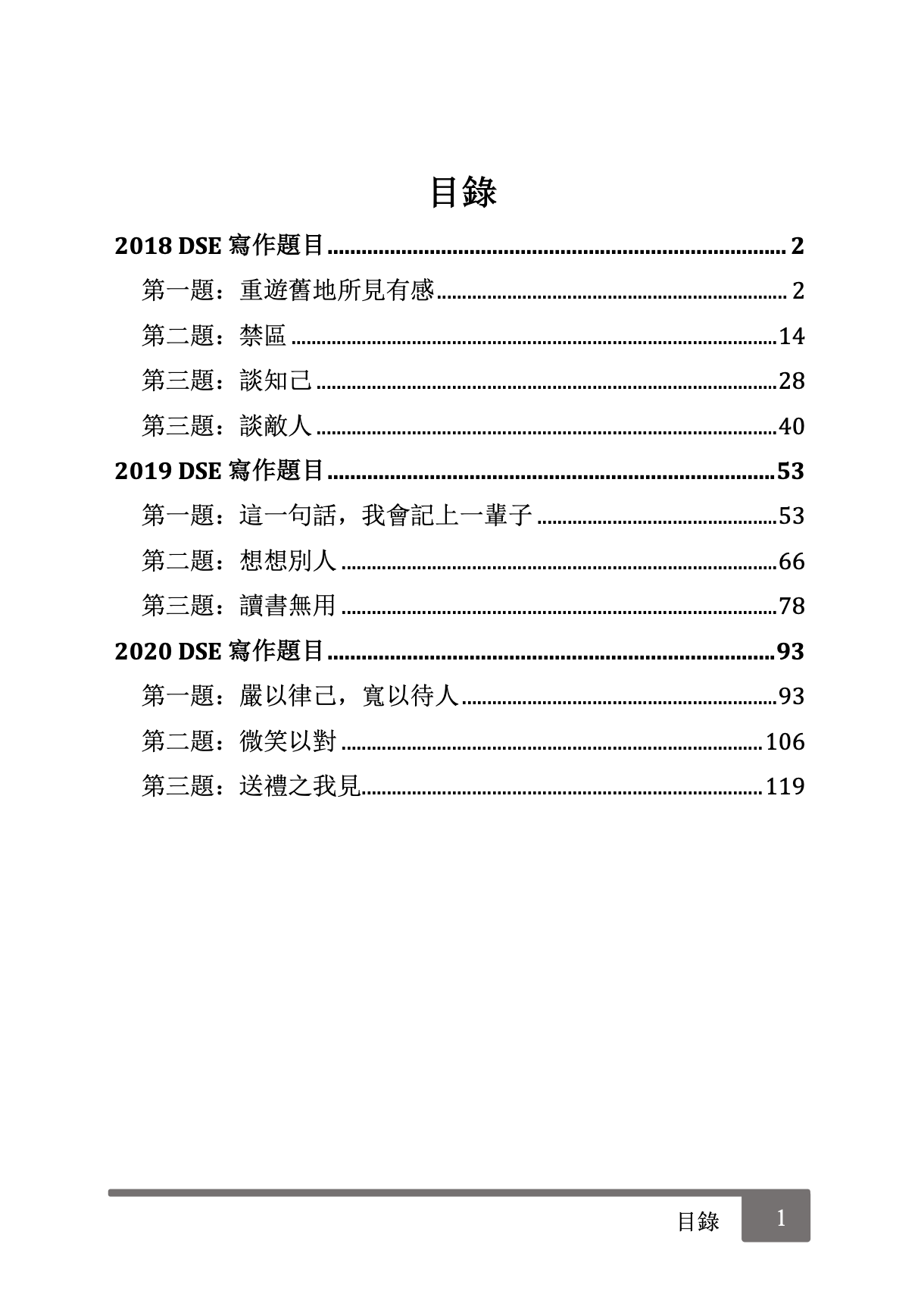 本書收錄9篇寫作範文,涵蓋 2018-2020 DSE 中文作文題目,包括: