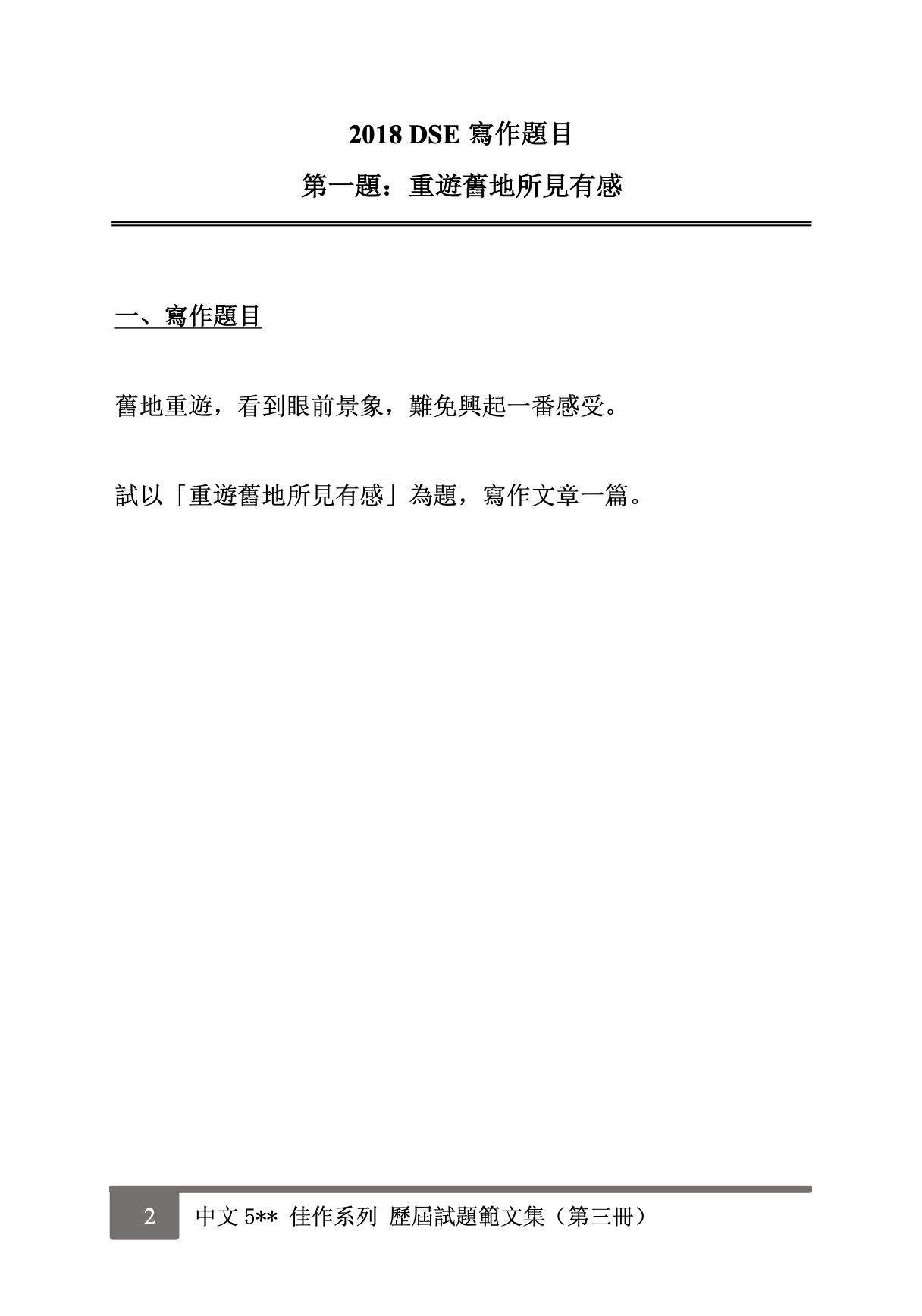 ✏️ 2018 DSE 寫作題目:
