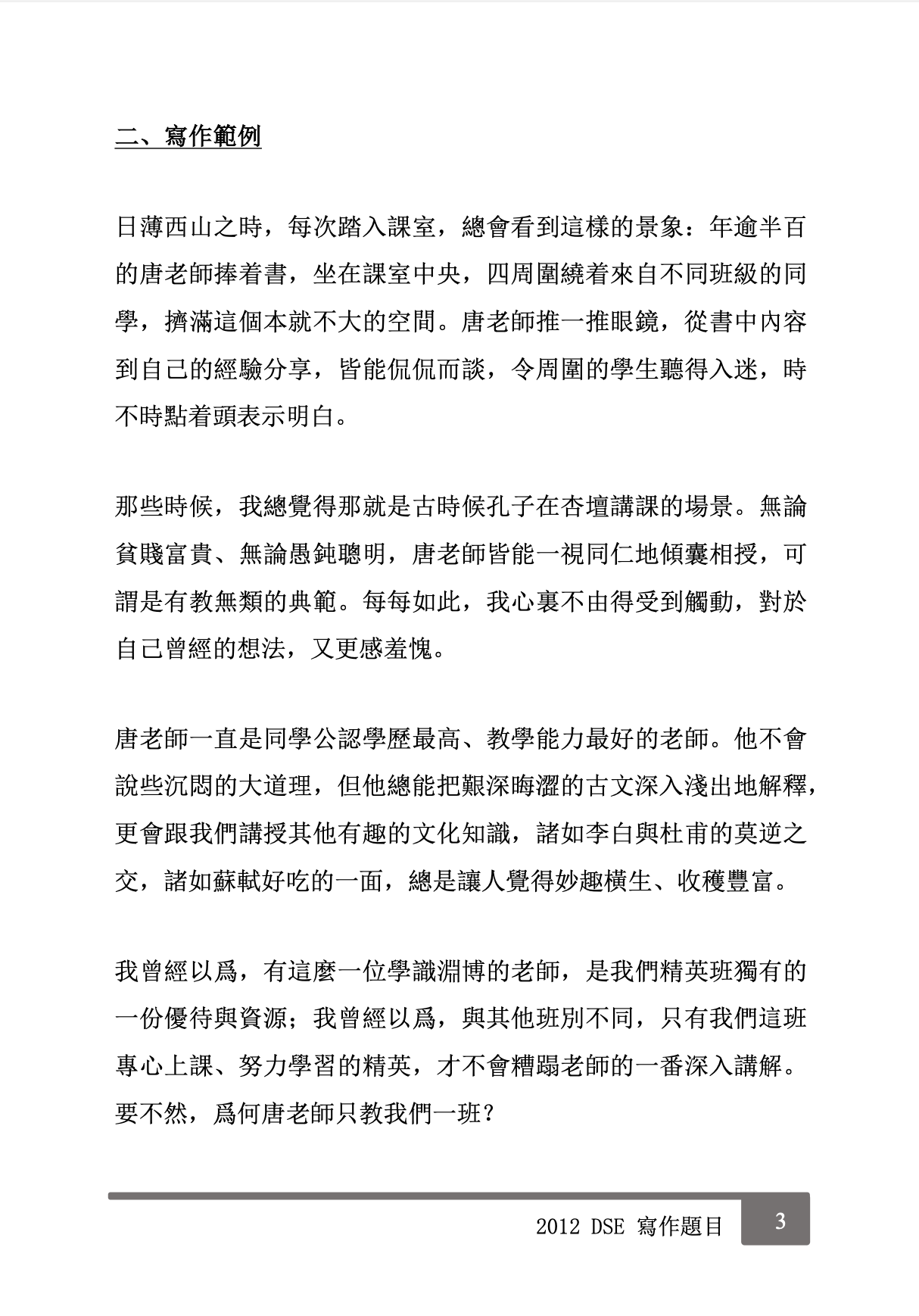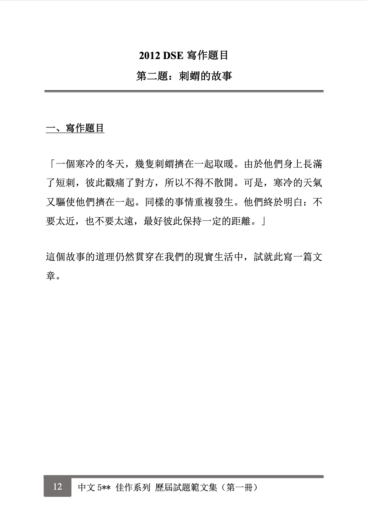 ✏️ 2012 DSE 寫作題目: