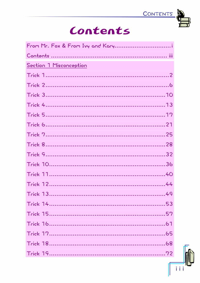 - 從錯誤中學習為學習的其中一個有效途徑,而從他人之錯誤中學習亦能令自己獲益。書中以典型的例子及簡潔清晰的解說,列舉學生在學校習作、公開考試中經常重犯的錯誤。閱畢此列系叢書,同學將能引以為鑑,避免重蹈覆轍。