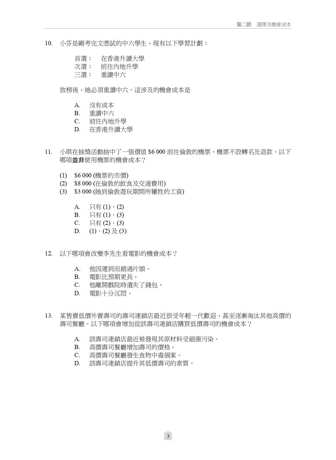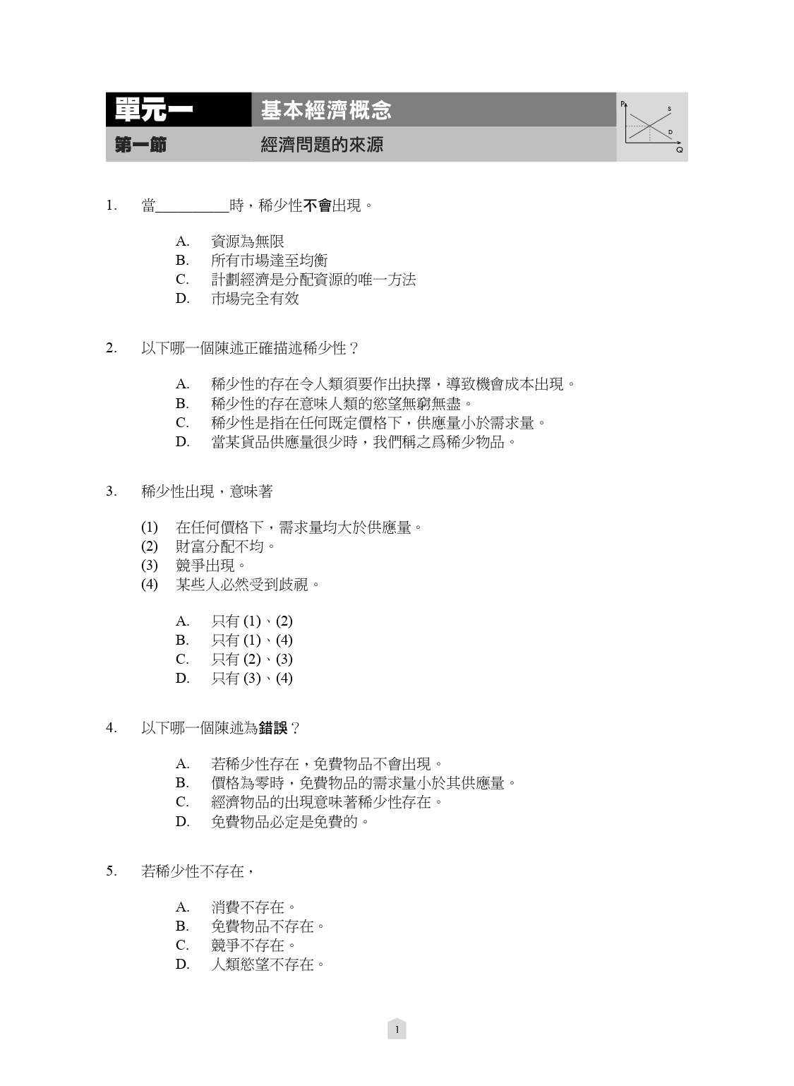 – 經濟 600 (MC 練習) (中文版)