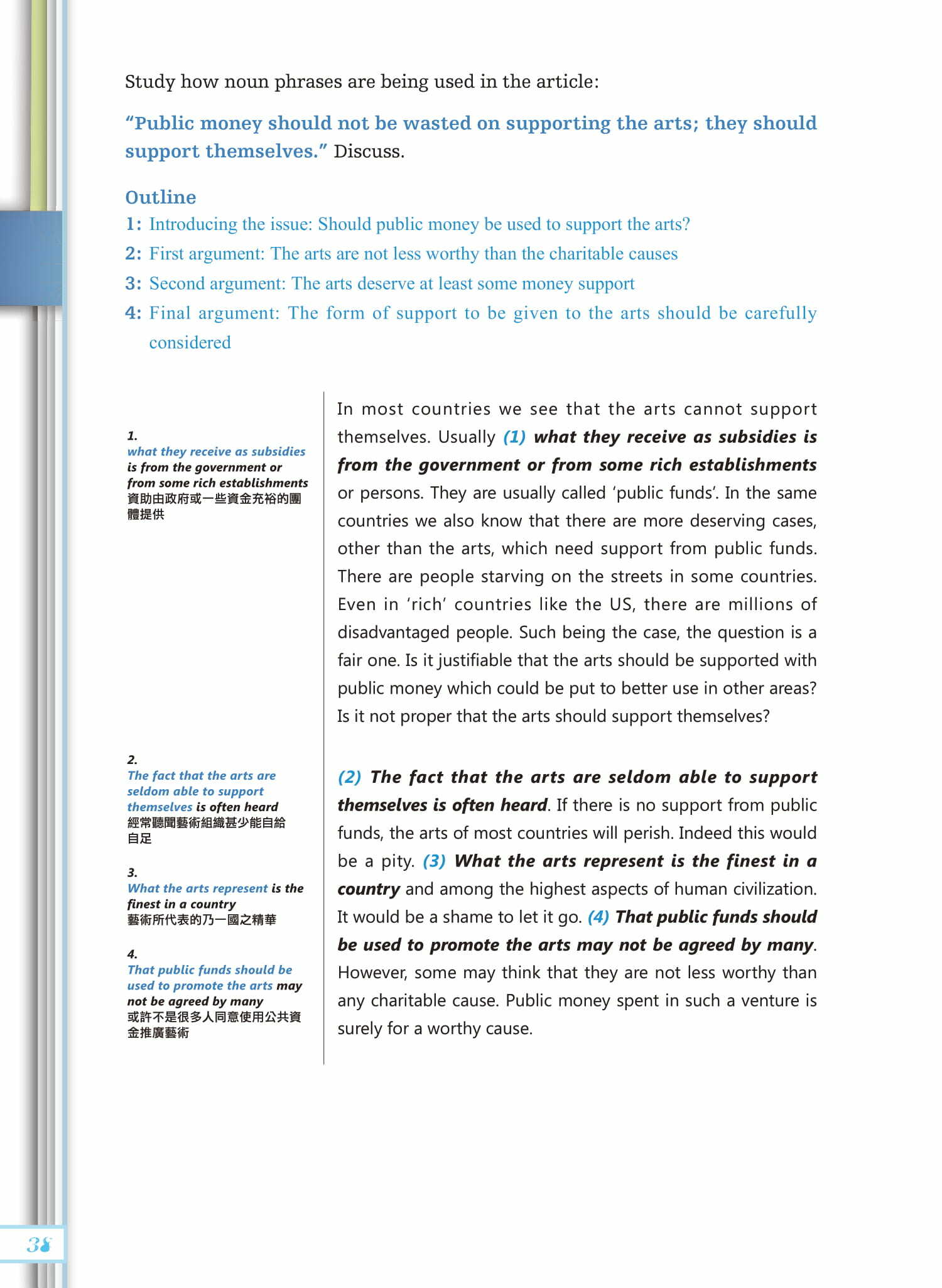 - Chinese translation to featured sentences in examples, practice exercises and sample articles