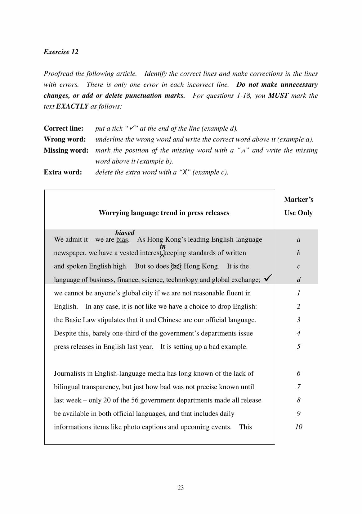 - This is not just a simple proofreading exercise book. It is written to fulfil the desire of those students who want to be challenged by a more difficult level of English grammar. Despite this, students with a lower English standard can also benefit. They can improve their grammar by doing the exercises and learning from the detailed explanatory notes which include ample examples to illustrate the correct usage of some difficult grammar and vocabulary items (e.g. participles, parts of speech).