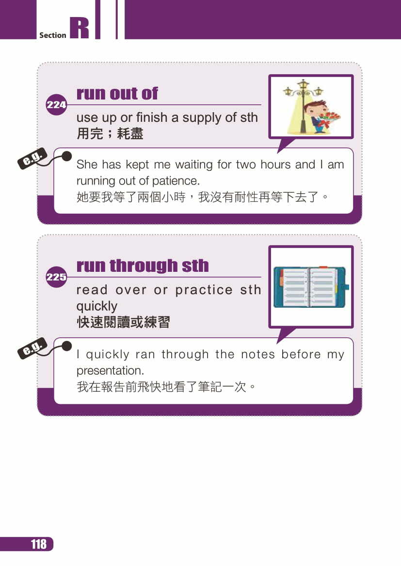- 按英文字母編排,劃分為23章,涵蓋300個片語動詞