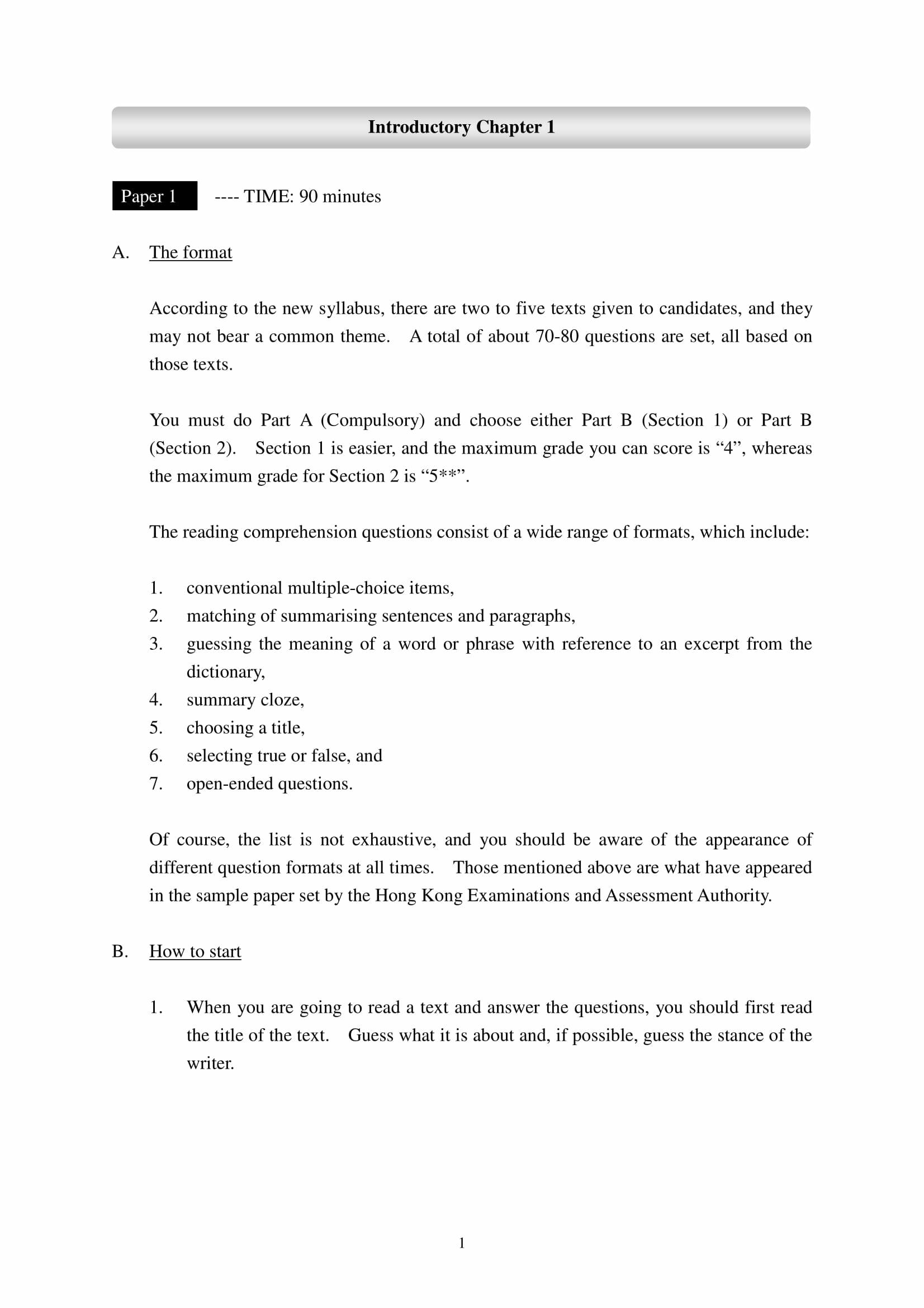 ◊ 2. 導論章節說明作答試卷各部分所需的技巧