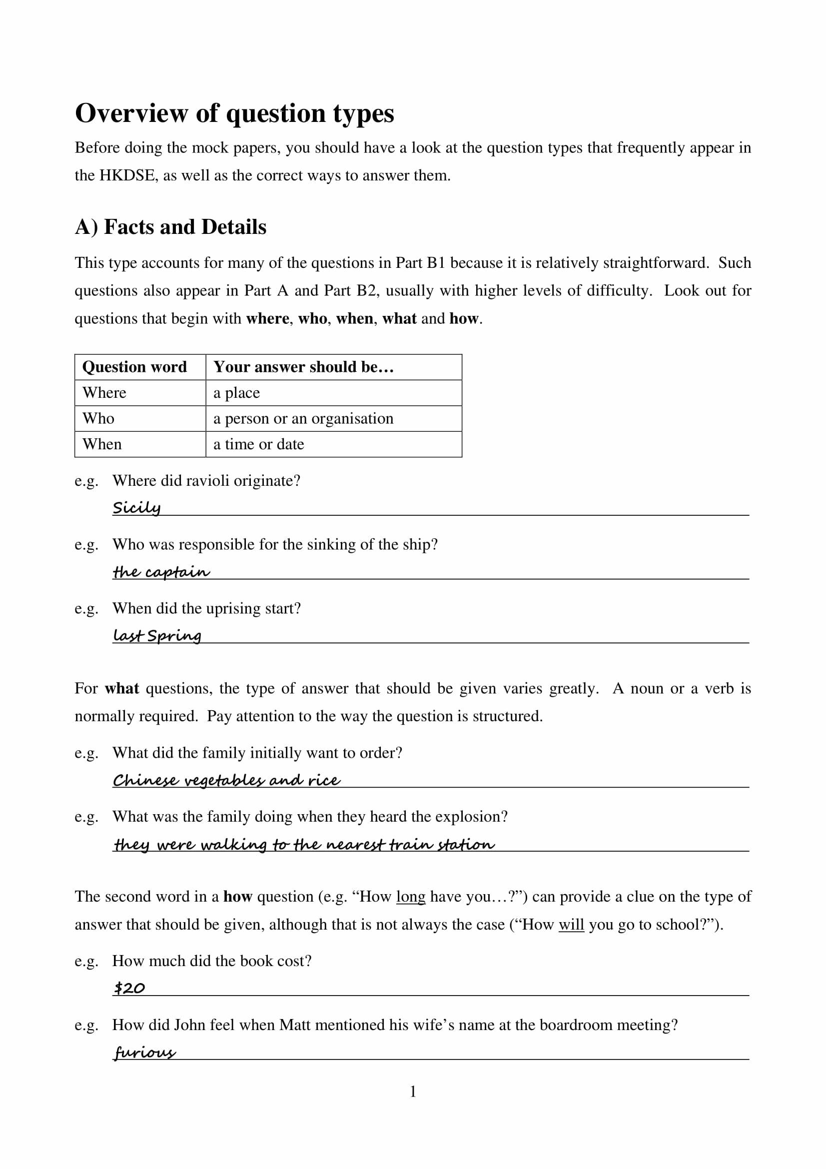 ◊ 1. MARKING SCHEMES which simulate the ones released by the HKEAA,