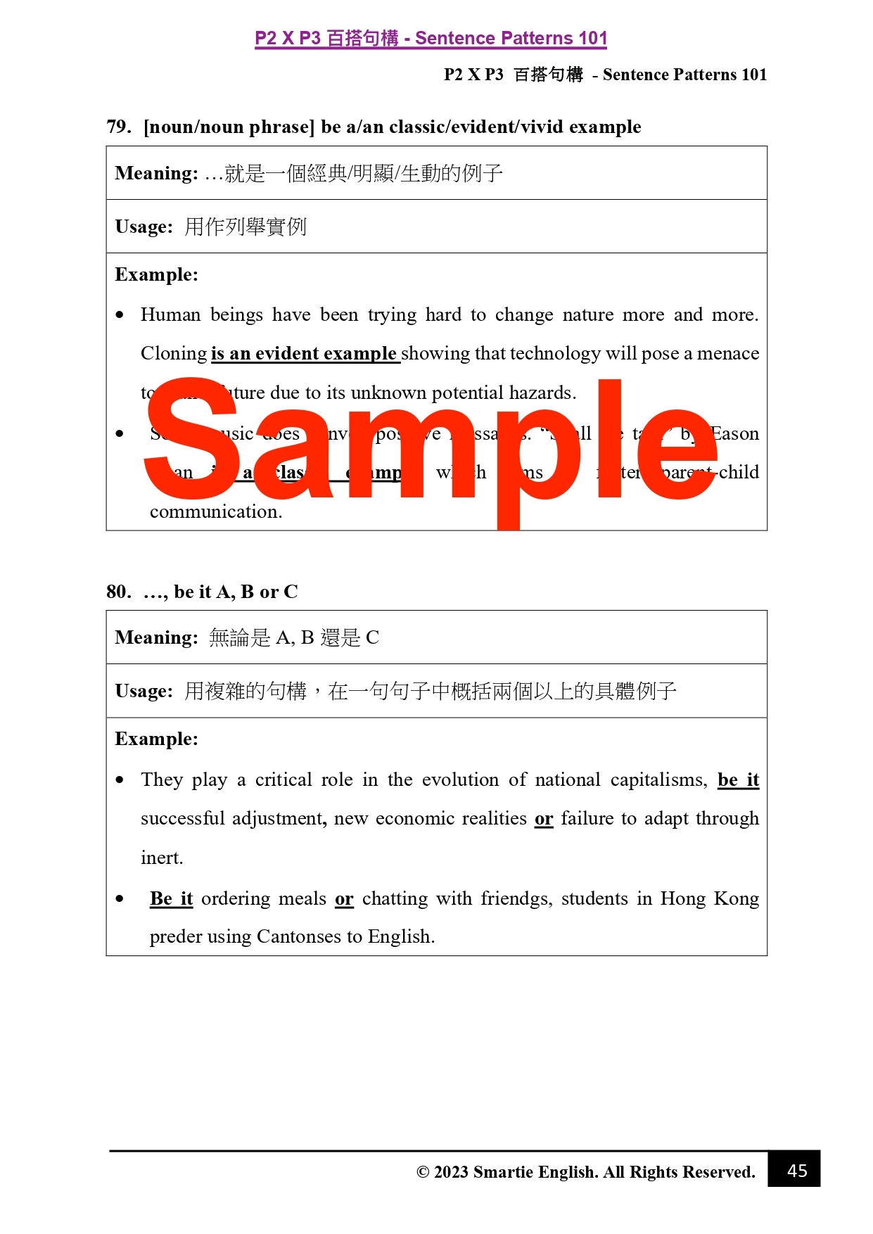 坊間唔少有關句構嘅筆記同練習,但係鋪排雜亂無章,同學讀完都唔知點用返出黎🤦🏻♀🤦🏻♂ Smartie將120個高階句構分為16大類,例如因果關係、建議、加強闡述等等 -節省溫習時間之餘,更容易係考試派上用場💃🏻