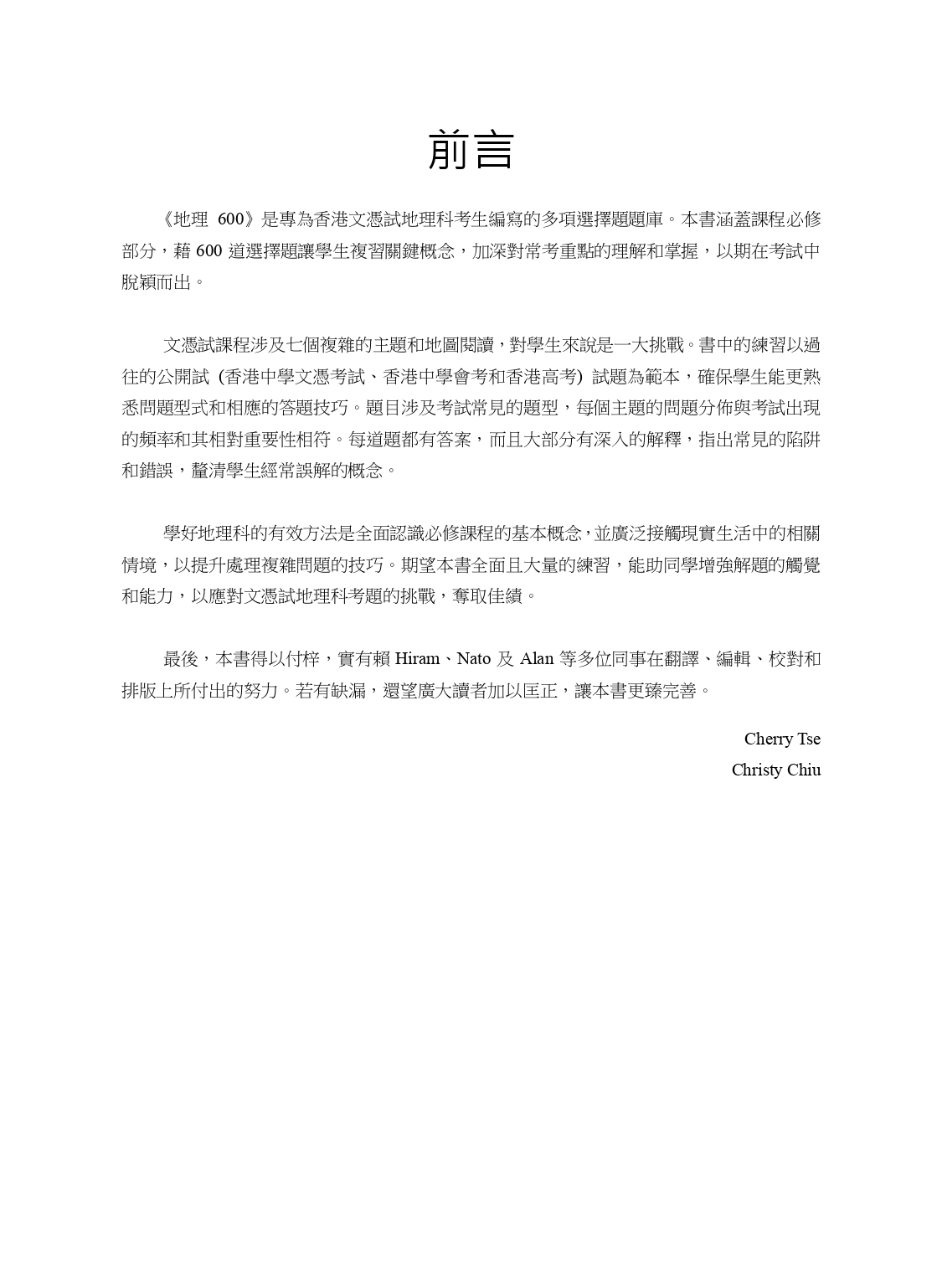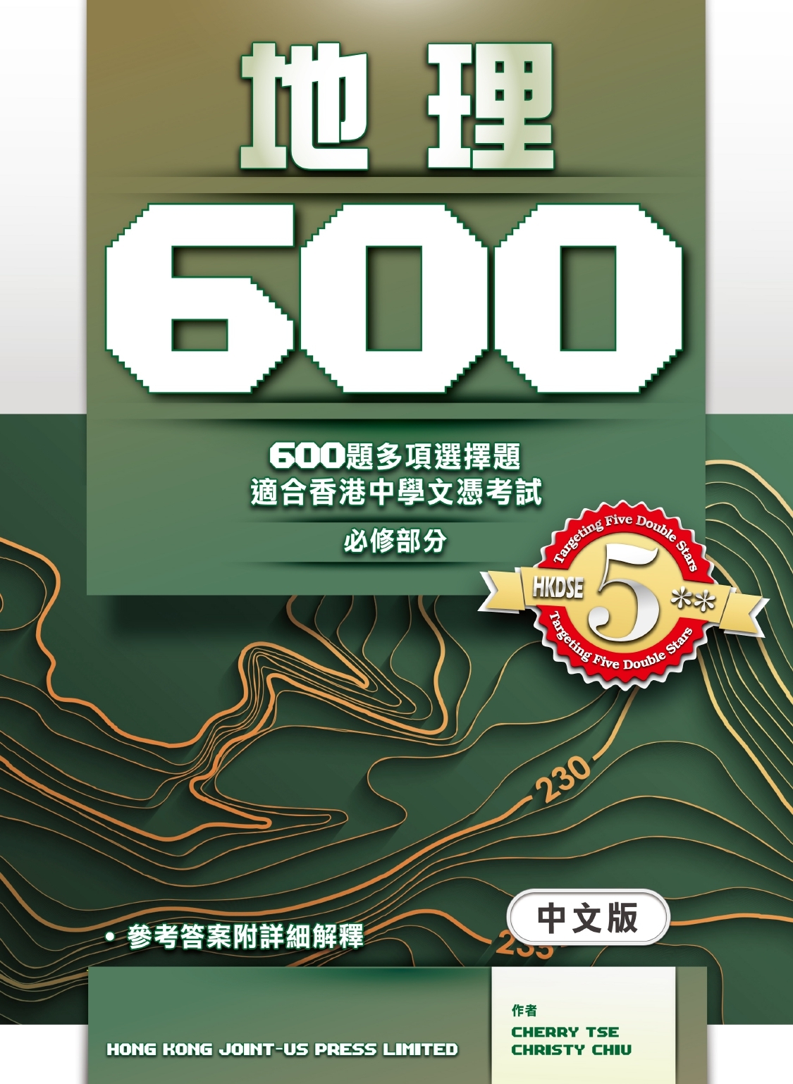 《地理600》是專門為香港中學文憑試地理科考生編訂的多項選擇題題庫。 本練習涵蓋課程的必修部分,務求使學生對科目有更深入的了解,掌握課題重點,從而在公開試中考獲佳績。