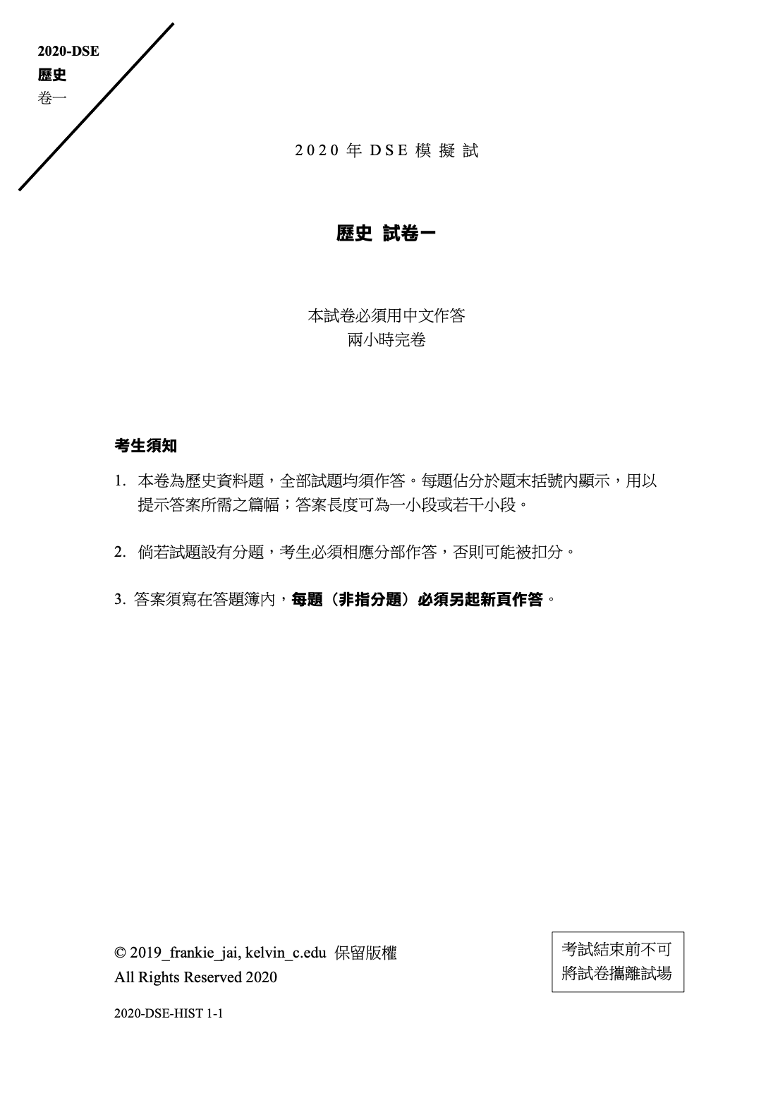 兩位深黯 DSE 歷史考試之道的過來人特意為 DSE 考生炮製了足足121頁模擬試卷套裝,包含四題 DBQ 及七題 essay並附設評卷參考及考生示例,絕對值得參考!