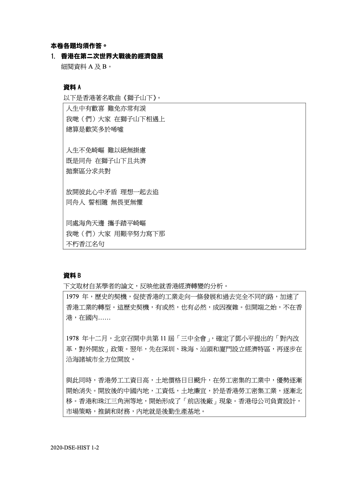 - 英文版:DSE History Mock Set